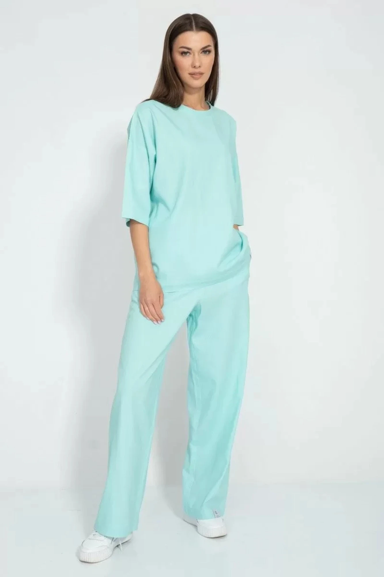 Костюм состоящий из брюк прямого свободного кроя с карманами в боковых швах и джемпера свободного кроя. С приспущенным рукавом и кулиской по низу изделия с возможностью регулировки ширины низа. Ткань лен. Отлично сочетается с шортами модели 4074, рубашкой 4073, рубашкой 4081, джоггерами 4082