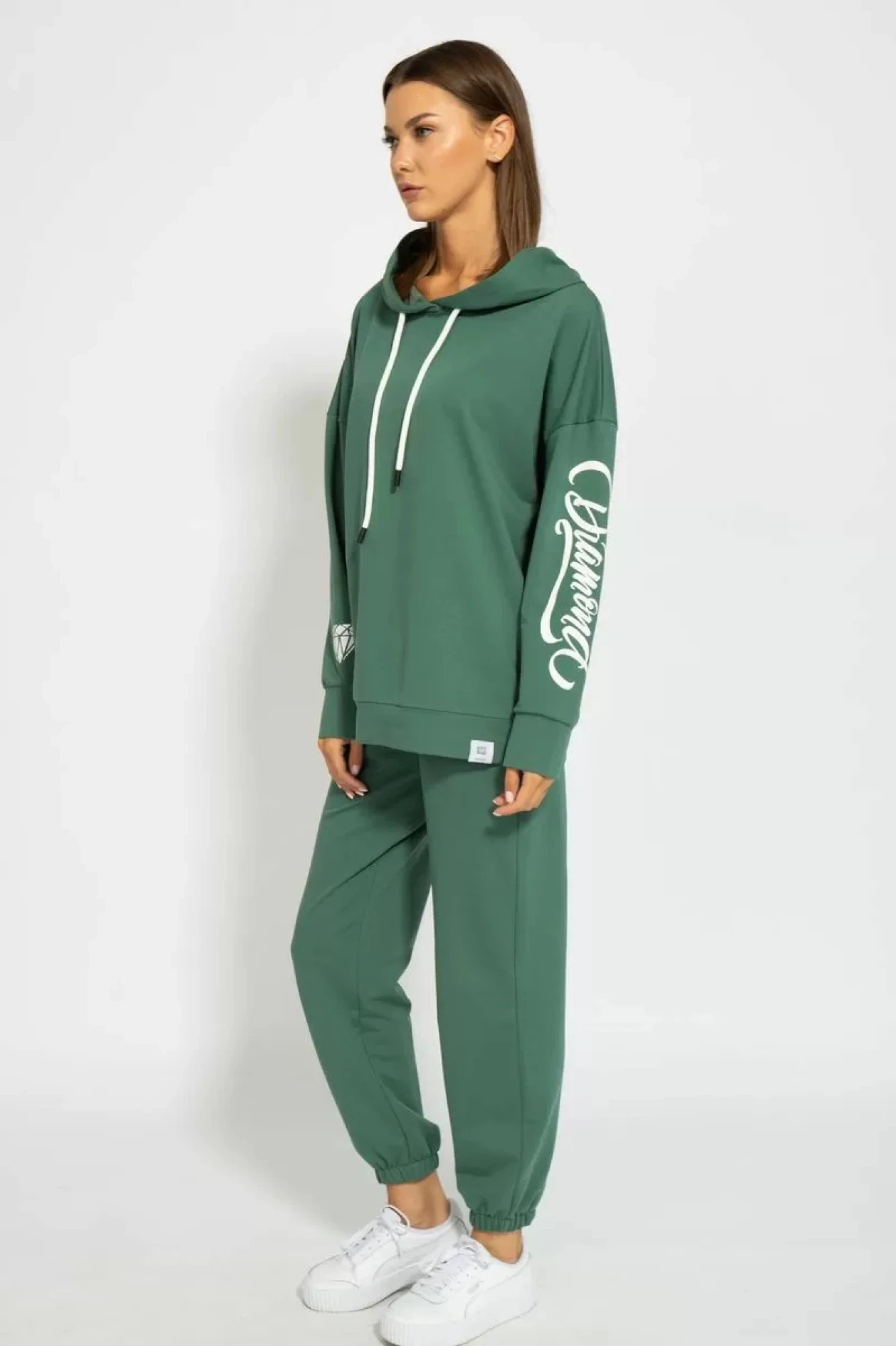 Костюм ОВЕРСАЙЗ с нанесением принта, с брюками средней посадки с карманами в боковых швах. Обработка низа брюк резинка. Ткань френч терри (2-х ниточный футер) с невероятно нежным внутренним слоем, качество Пенье, плотность 235 г.м2