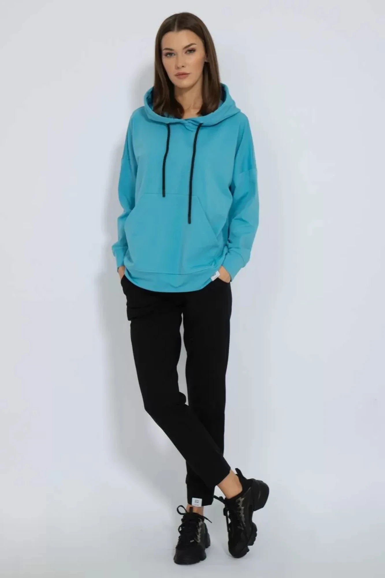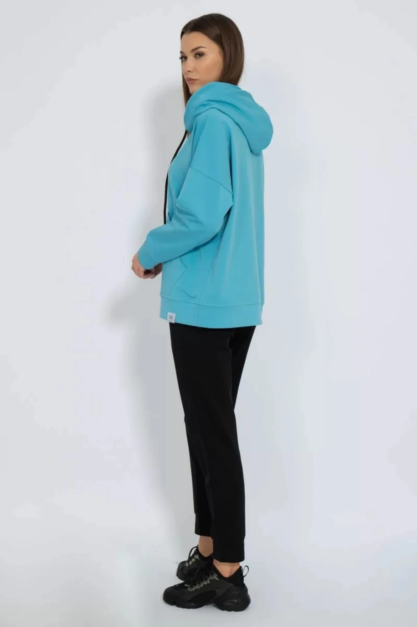 Костюм. Худи оверсайз с капюшоном на подкладке из основной ткани. Брюки средней посадки зауженные к низу с карманами в боковых швах. Обработка низа брюк манжета. Ткань френч терри (2-х ниточный футер) с внутренним слоем на петельной основе, качество Пенье, плотность 235 г.м2 Только деликатная стирка 30 градусов, не использовать отбеливатели, изделие вывернуть наизнанку