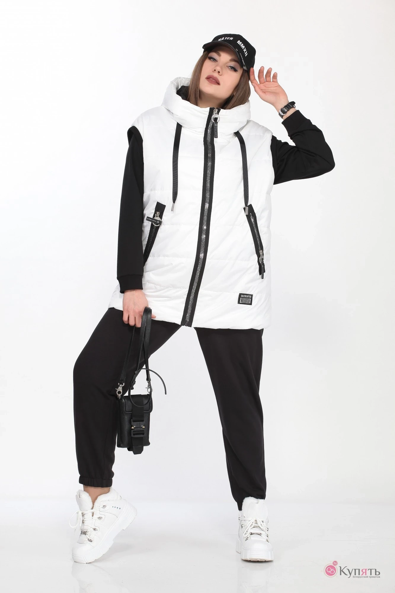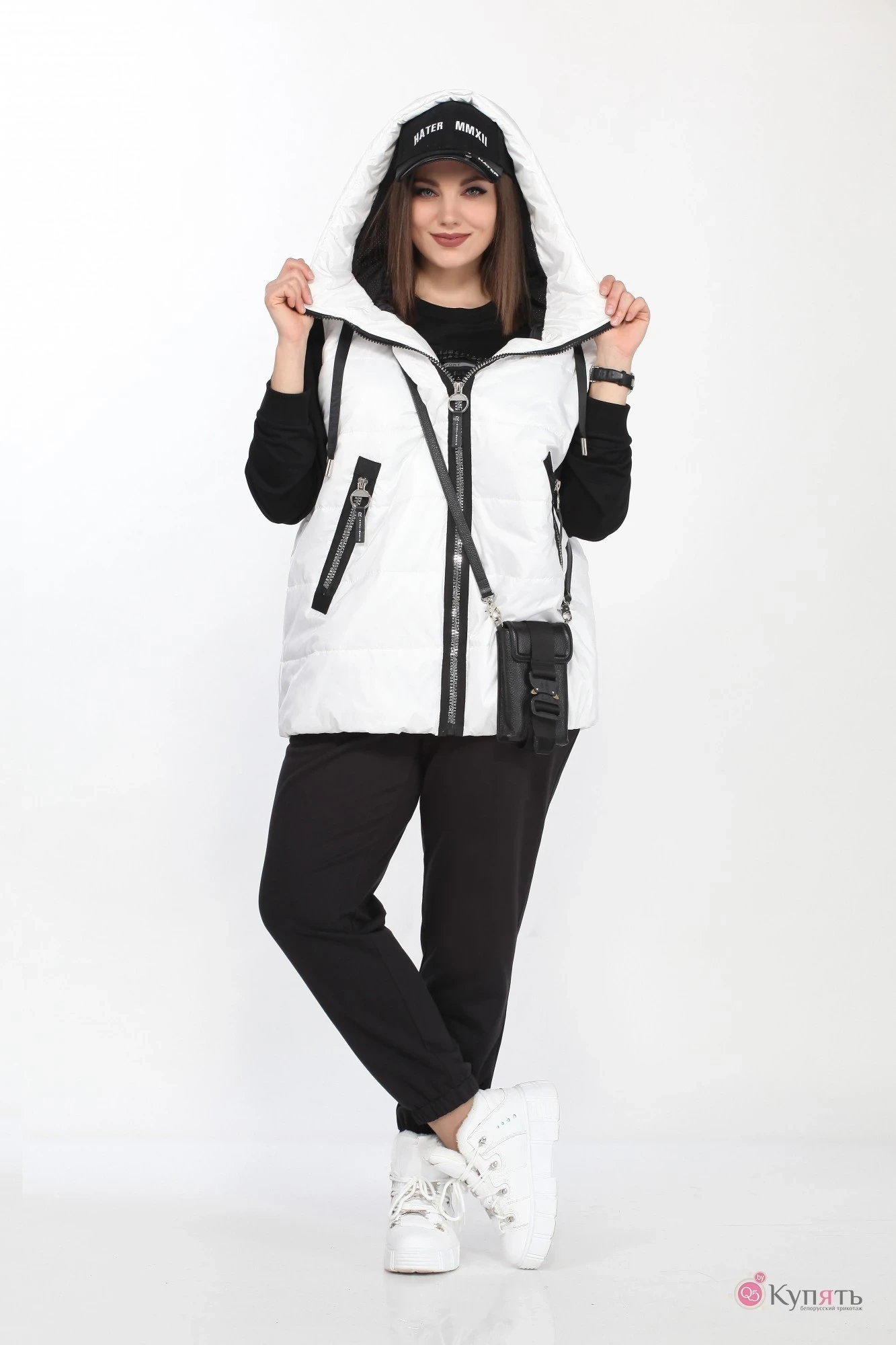 Стильный спортивный комплект тройка. Жилет свободного силуэта с капюшоном на стойке из водоотталкивающей ткани “ЛАКЕ”, уникальный бельгийский утеплитель «ISOSOFT» 100 г. на метр кв. и ветрозащитной мембранной подкладки «Barrier». По полочкам прорезные карманы. Низ жилета при собран на эластичную тесьму. Застежка декор. молния. Джемпер-худи и брюки из трикотажного хлопкового полотна “трехнитка”. Удлинённый джемпер-худи свободного силуэта с капюшоном и прорезными карманами в боковых швах, рукав втачной на спущенной пройме. Брюки свободного силуэта с прорезными карманами в боковых швах, пояс и низ на эластичной ленте со сборкой.
