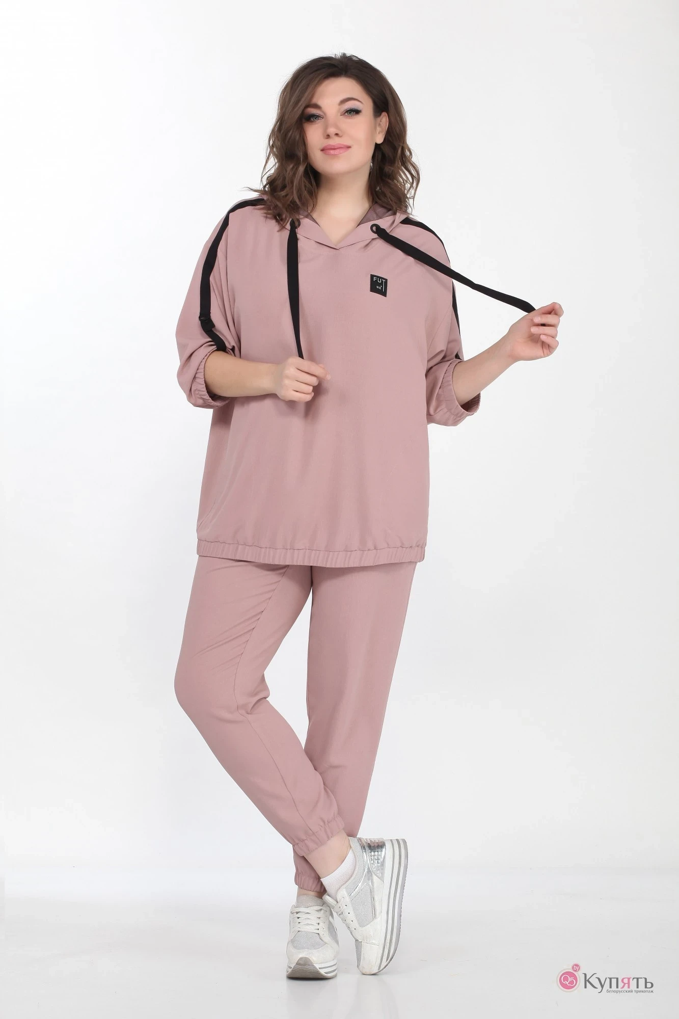 Летний костюм из легкой стрейчевой ткани с “Крэш” эффектом в спортивном стиле. Джемпер с капюшоном свободного силуэта, рукав втачной, укороченный, на спущенной пройме и эластичной манжете с регулировкой на подхват, По низу отрезная эластичная планка, в боковых швах карманы.