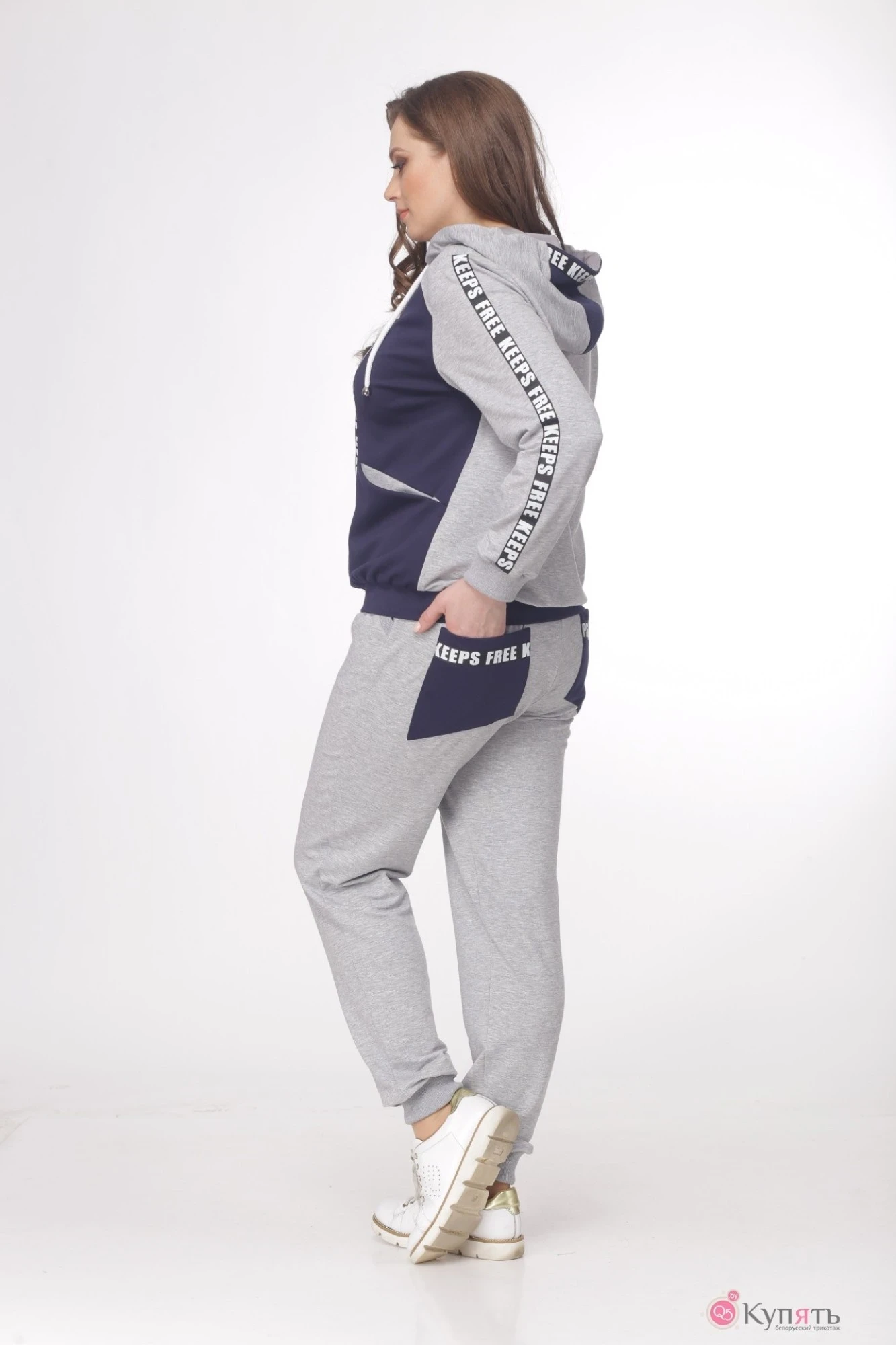 Спортивный костюм, выполненный из мягкого трикотажа. Модная отделка с текстовым принтом, а также контрастные карманы по спинке брюк делают комплект современным и молодежным. Светлая подкладка карманов на полочке добавляет оригинальности. Комплект порадует Вас удобством и комфортом.