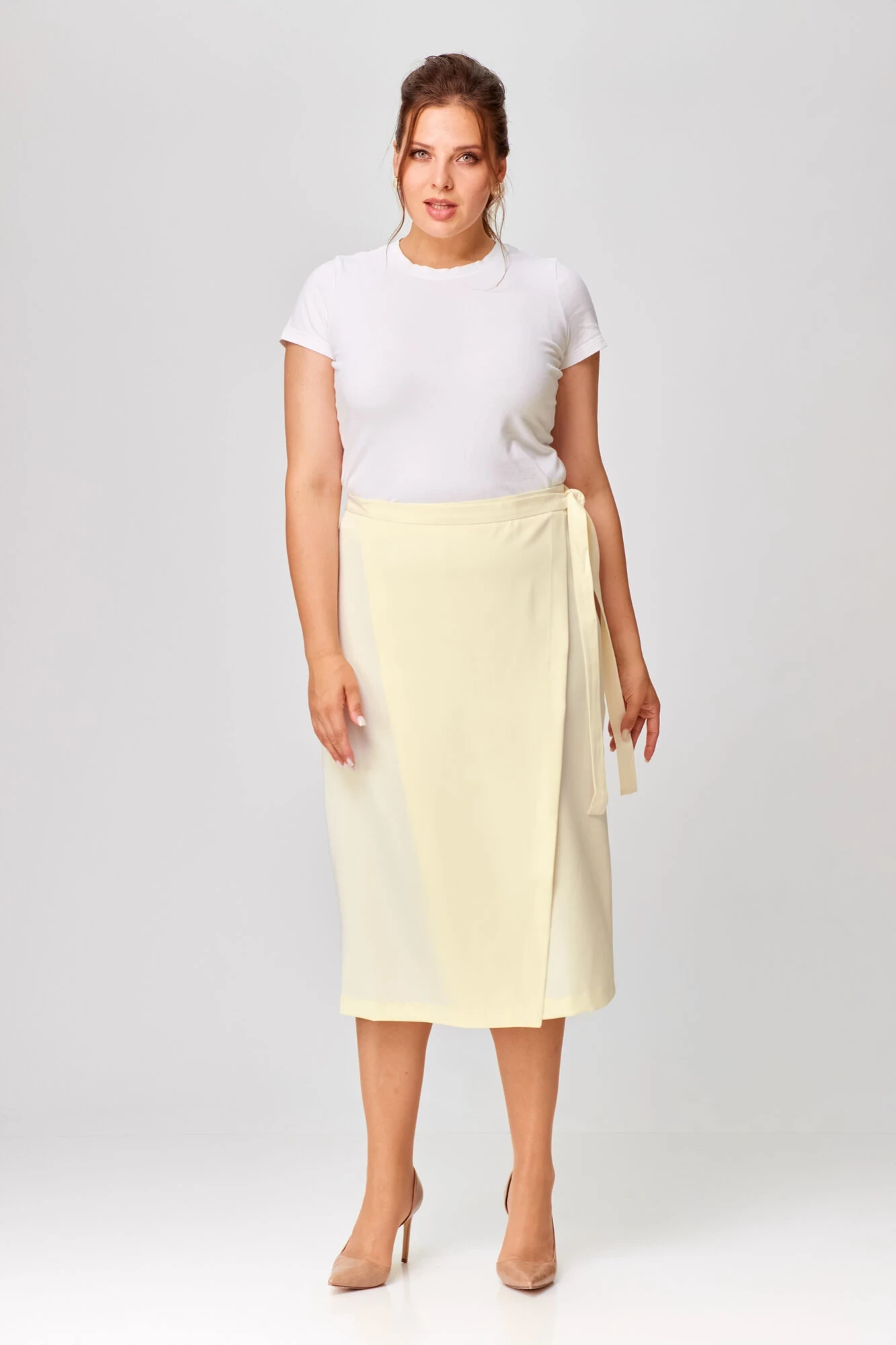 Миди-юбку можно надеть как нарядную, как повседневную. Эта юбка отлично впишется и в офисный образ.