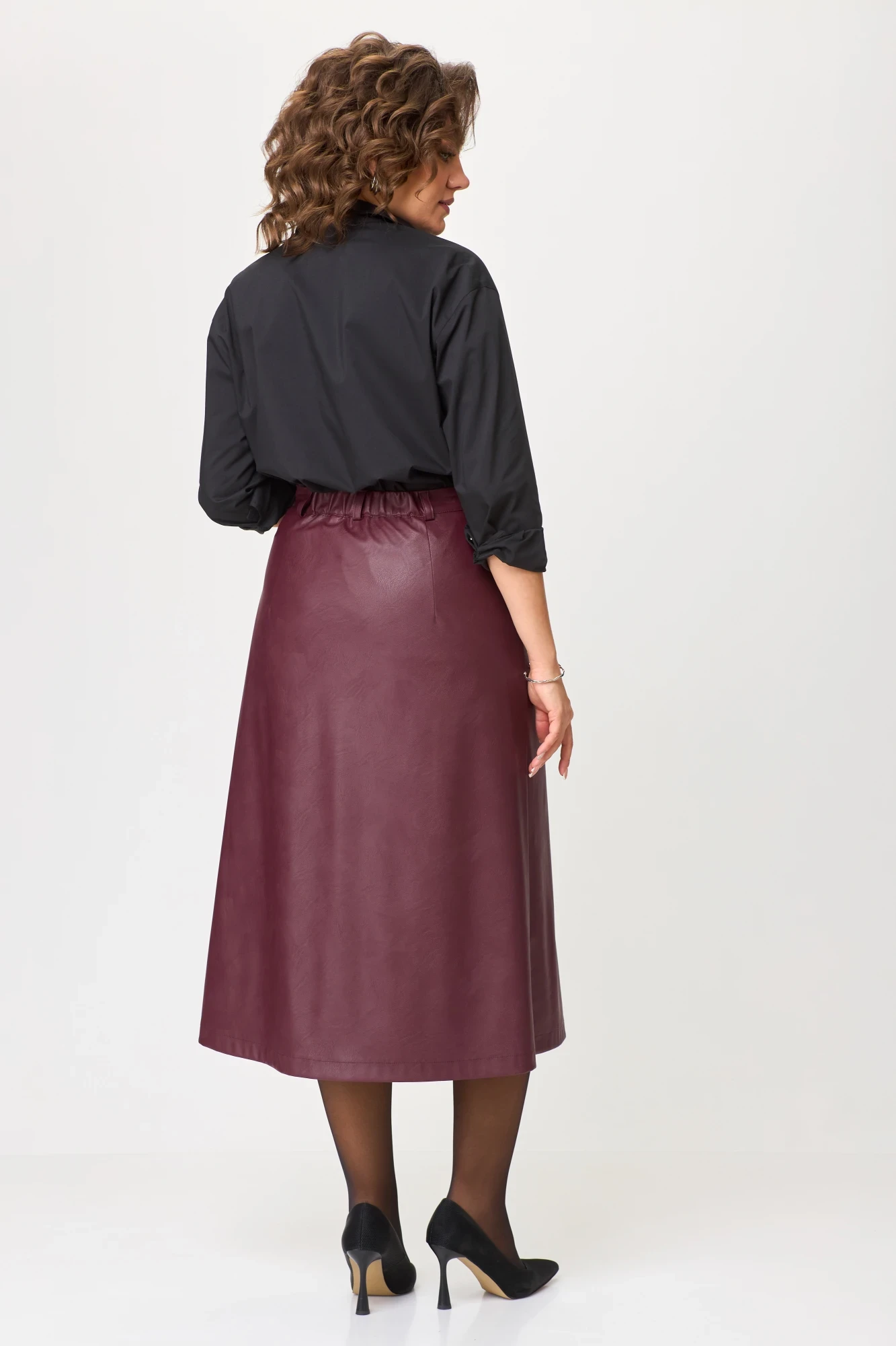 Юбка А-образного силуэта, длиной ниже колена, выполнена из экокожи. Юбка на подкладке.