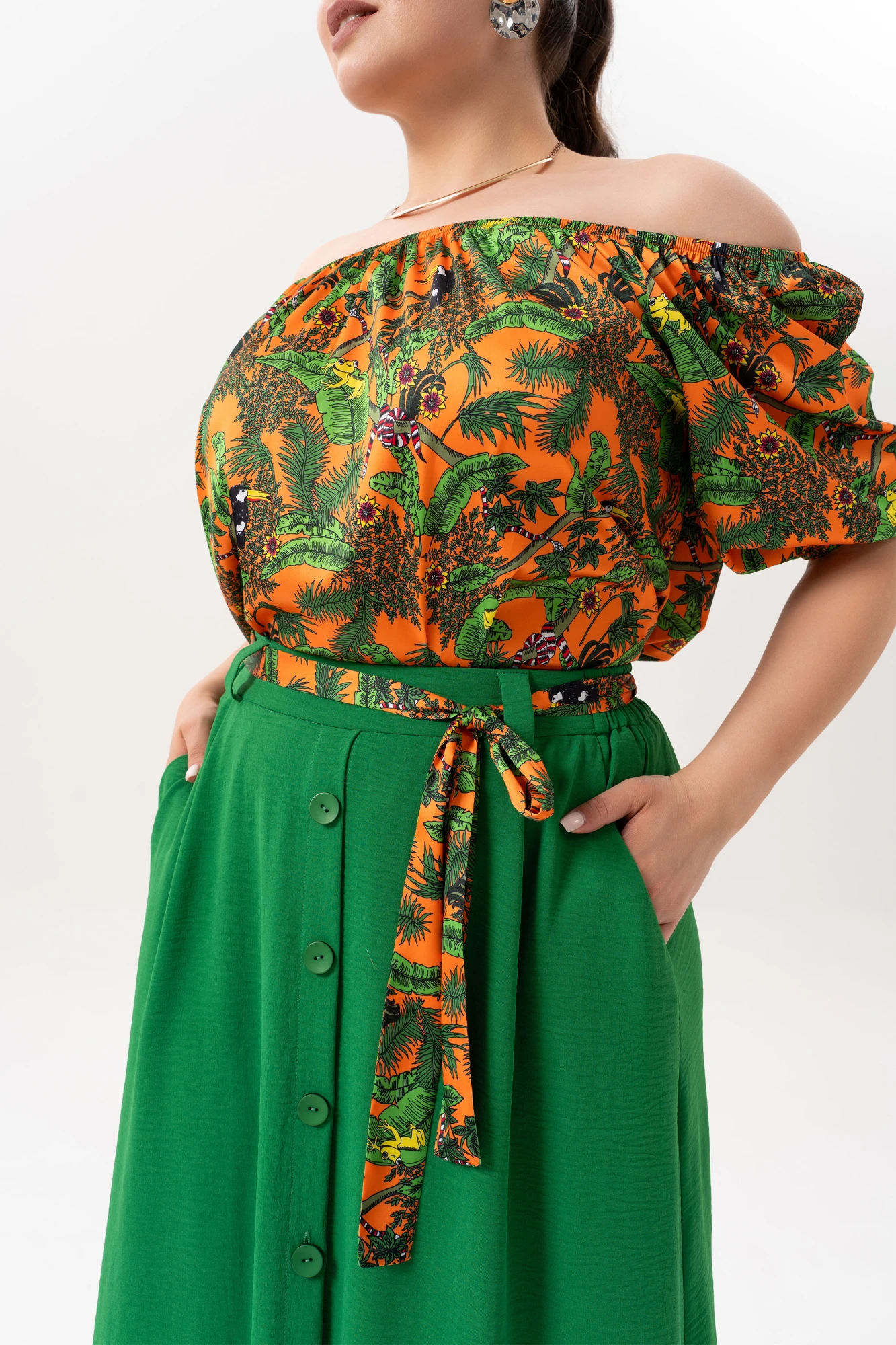 Юбка на поясе по полочке с двумя шлёвками, по спинке на резинке. юбка по переду на пуговицах, с боковыми наклонными карманами.