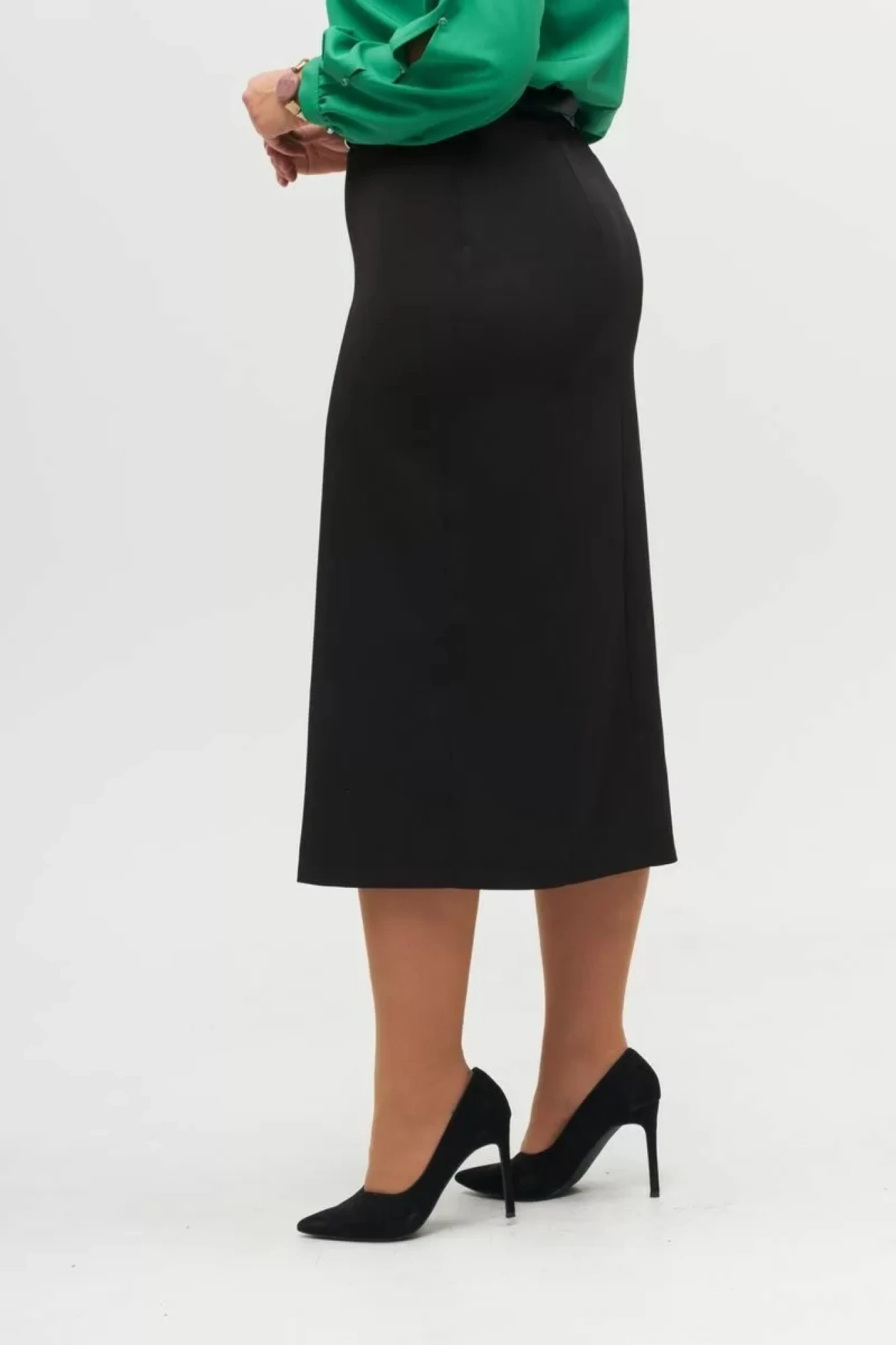 Юбка женская силуэт карандаш, длина миди. По переду женственный игривый разрез в центральном шве. По спинке талиевые вытачки. Застежка на петлю пуговицу и молнию по переду. Юбка актуального силуэта, придаст вашему образу элегантность и женственности, в ней вы будете чувствовать себя стильно и комфортно.