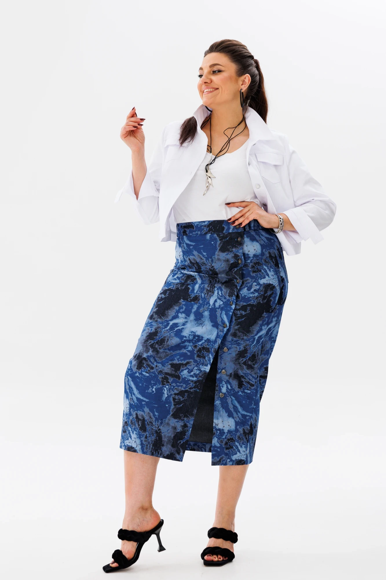 Ее роскошный синий цвет мрамора привлекает внимание и становится ярким акцентом вашего гардероба.