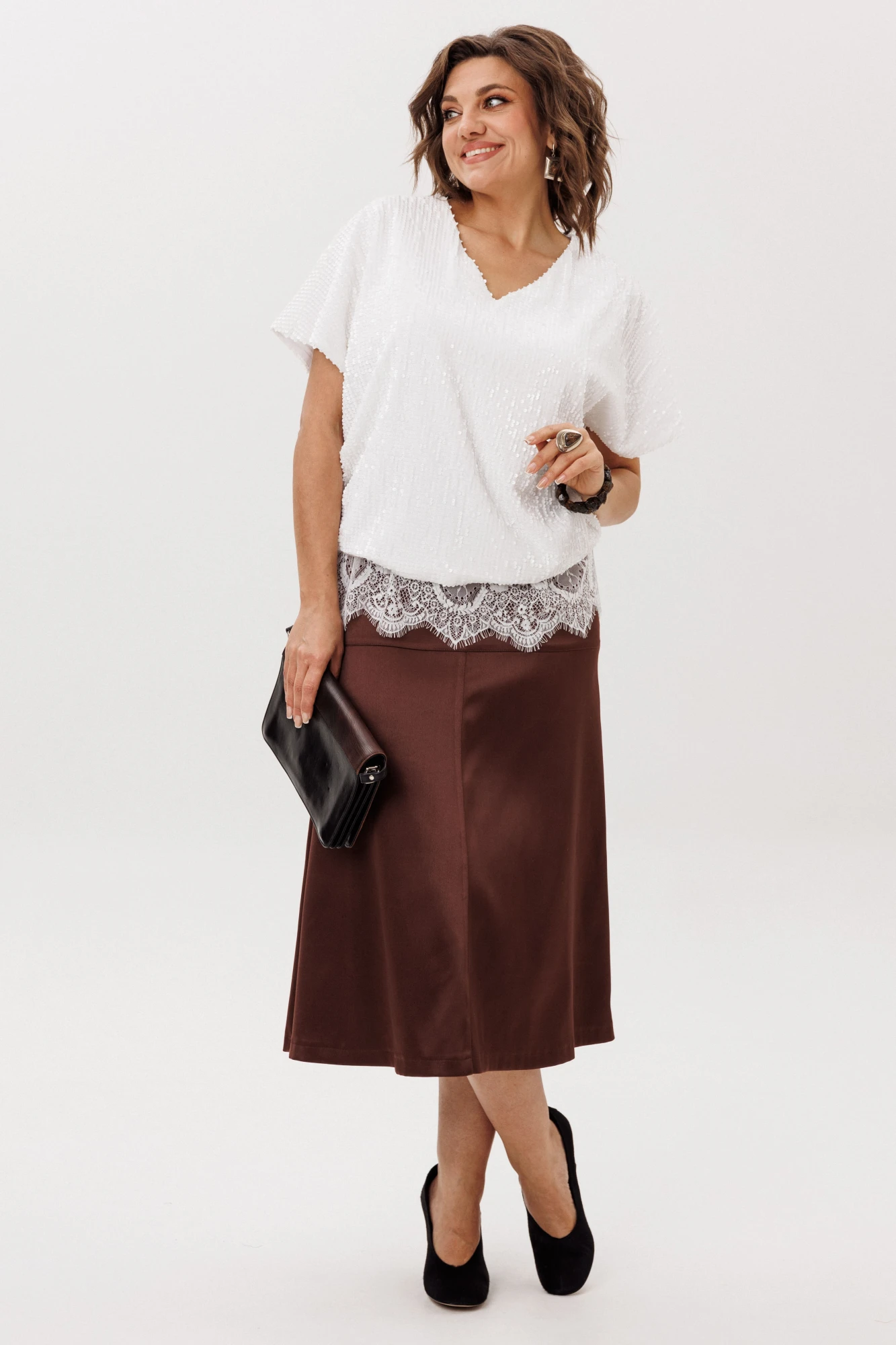 Эта юбка прекрасно сочетается как с классическими блузками, так и с повседневными топами, позволяя вам создавать стильные образы для любого случая.