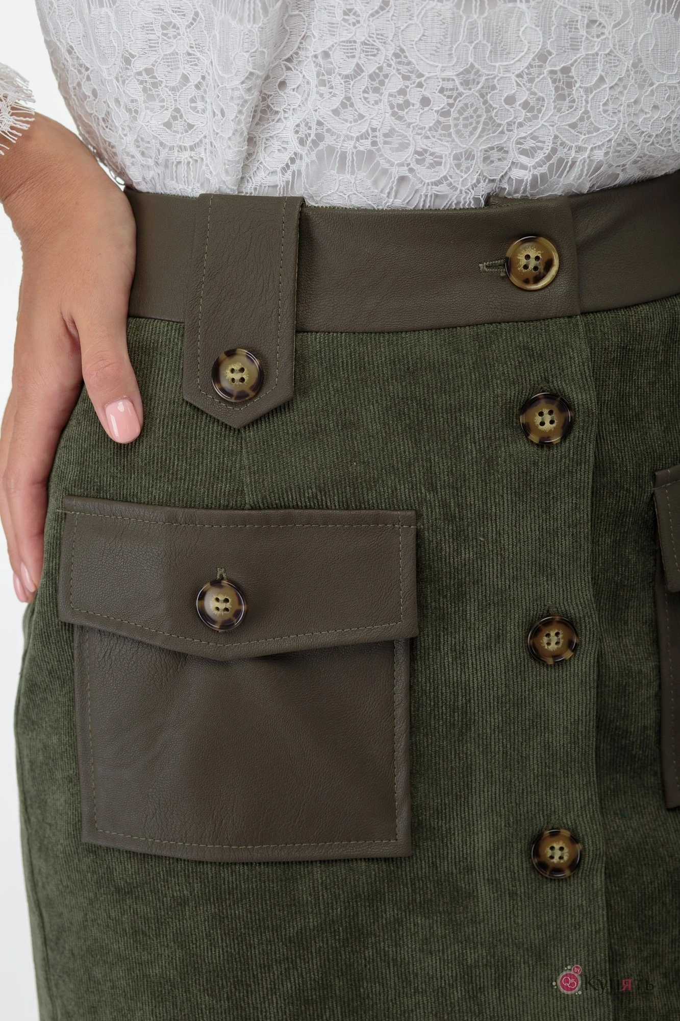 Юбка-карандаш из вельвета с кожаной отделкой создаст стильный образ!