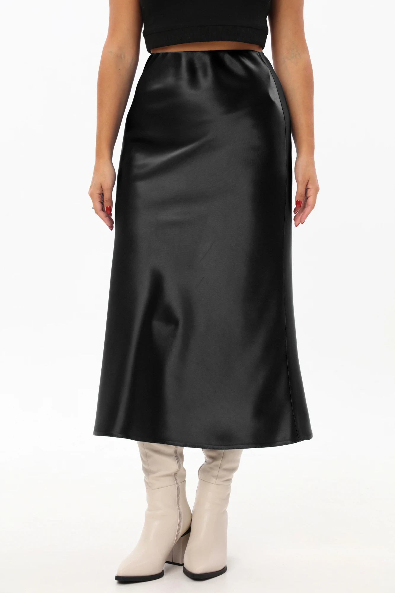 "Женская юбка из гладкой однотонной ткани с атласной структурой - тренд этого года. Французская длина и крой по косой создает элегантный силуэт и подчеркивает фигуру. Юбка поможет создать нарядный образ на праздник, а также модный стильный образ на работу и в офис.