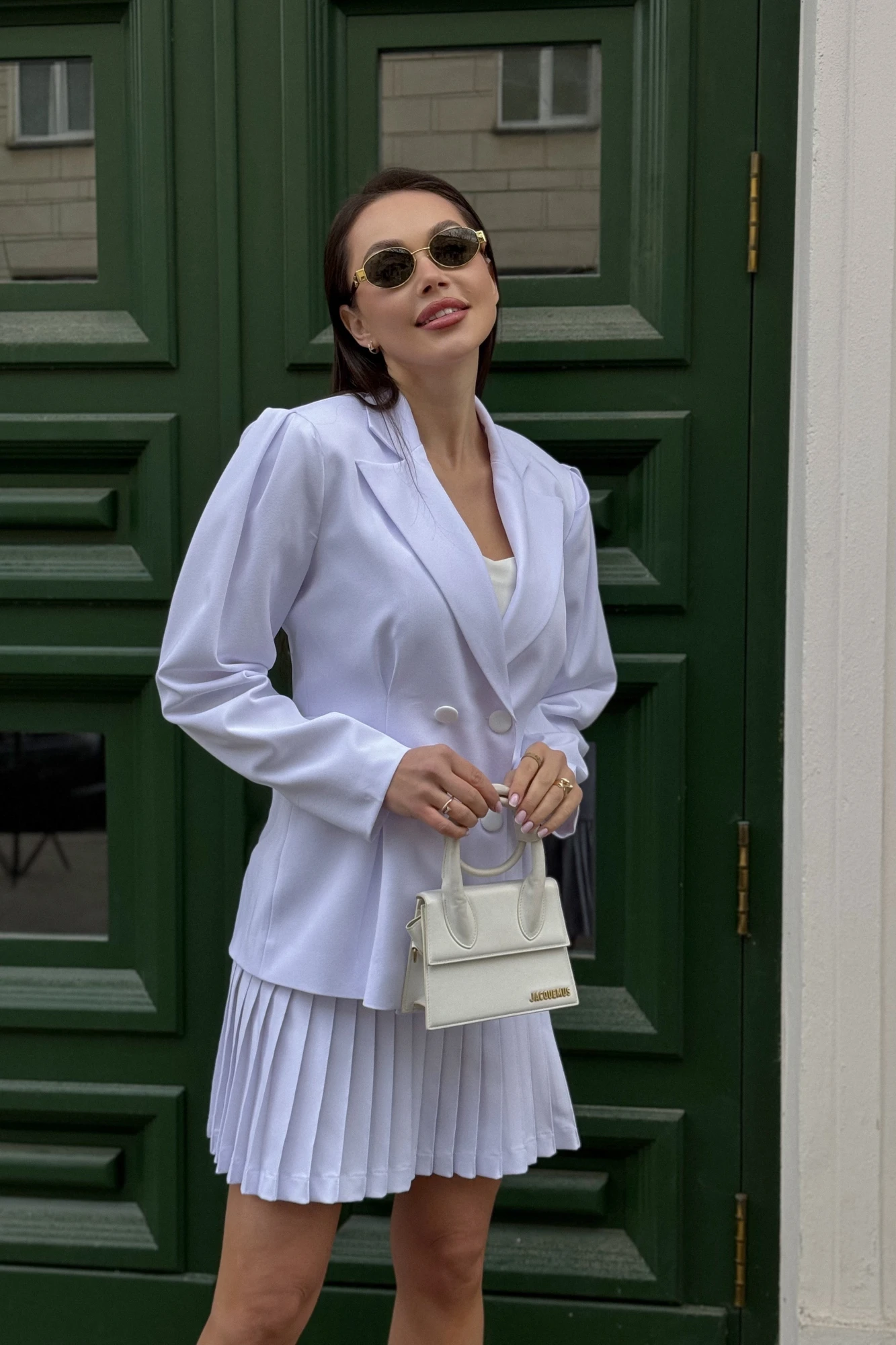Юбка в длине мини. Пояс притчой, п спинке обработан резинкой для лучшего прилегания. Низ юбки отрезной, собран в мелкую складку