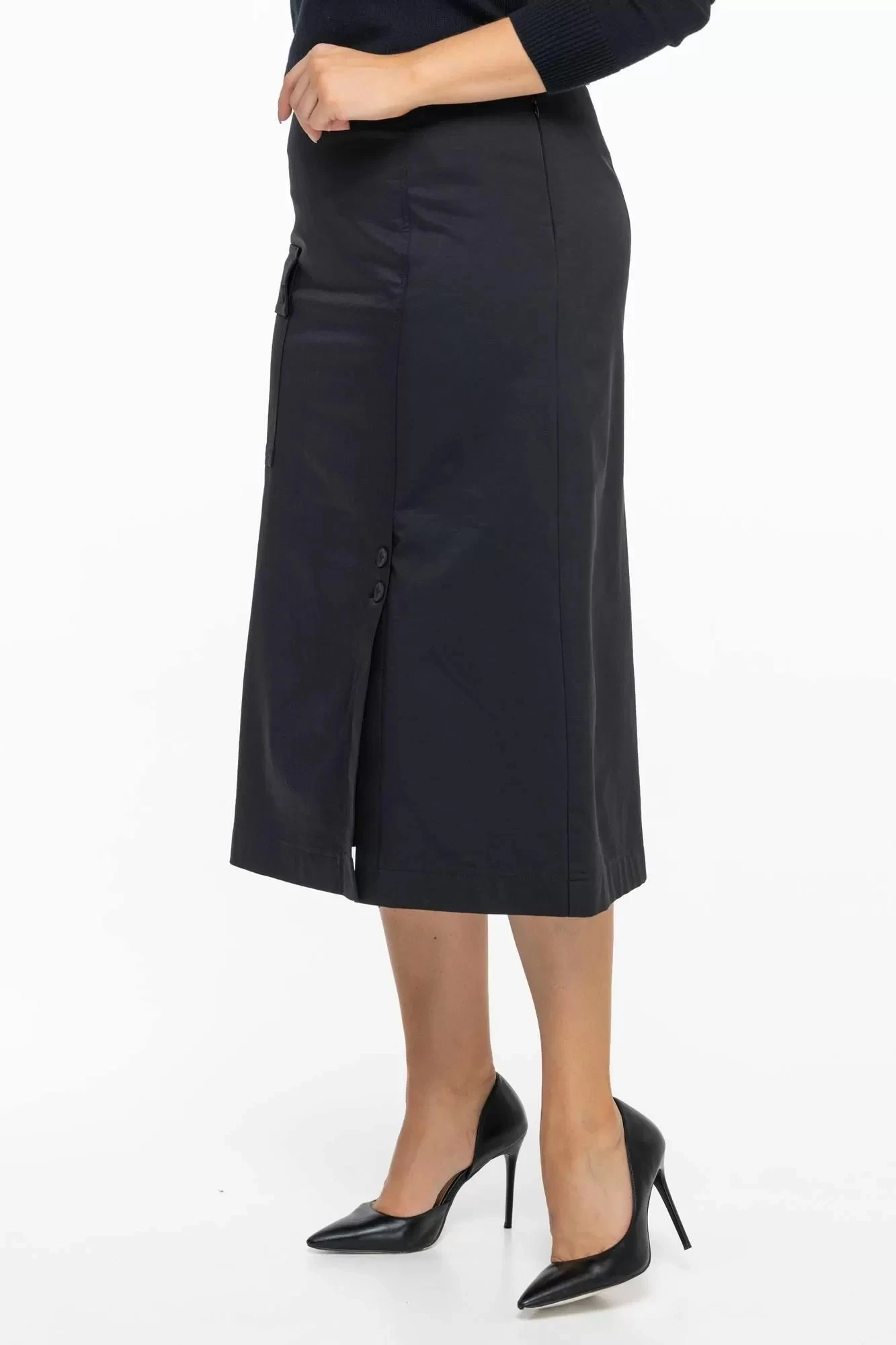 Юбка отлично подойдет для создания стильного и универсального образа. Накладной карман добавляет интересный акцент, а разрез придает ей изысканный вид. Она идеально подойдет как для офиса, так и для вечерних прогулок.