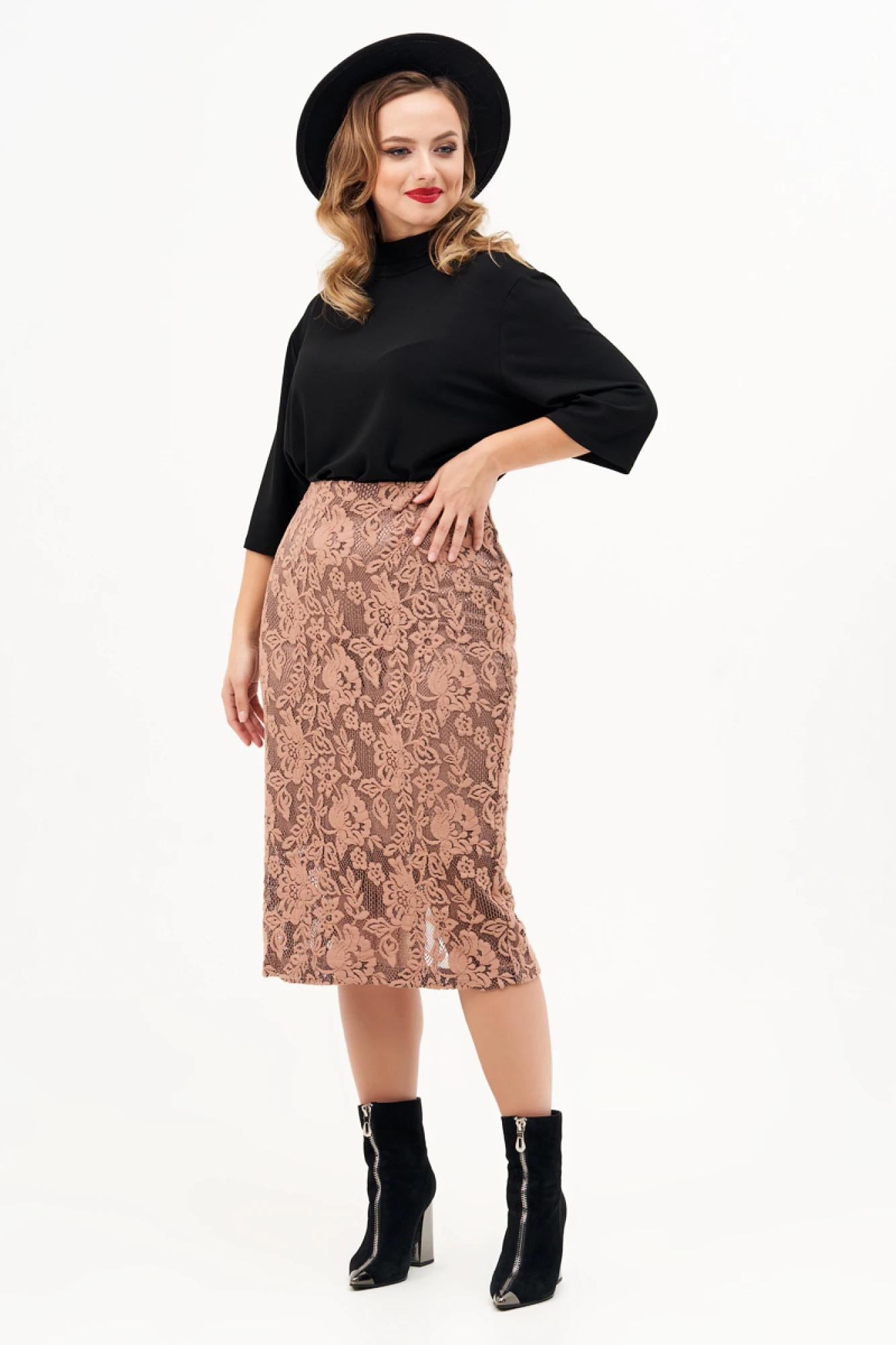 Эта кружевная юбка предлагает стиль и комфорт в одном, идеально подходит для создания оригинального и стильного образа. Подкладка немного короче длины самой юбки позволяет видеть верхнюю часть икр сквозь кружево и это придает кокетливости Вашему образу. Комфорт и удобство при носке обеспечивается высоким качеством материала, а приталенный крой элегантно подчеркивает фигуру. Благодаря своему универсальному дизайну, эта юбка легко сочетается с различными верхами, блузками и рубашками, позволяя создавать разнообразные и стильные образы. Регулируемый пояс добавляет ещё больше удобства и комфорта, позволяет подчеркнуть талию. Эта юбка из дизайнерского кружевного полотна подойдет покупательницам размера plus size.