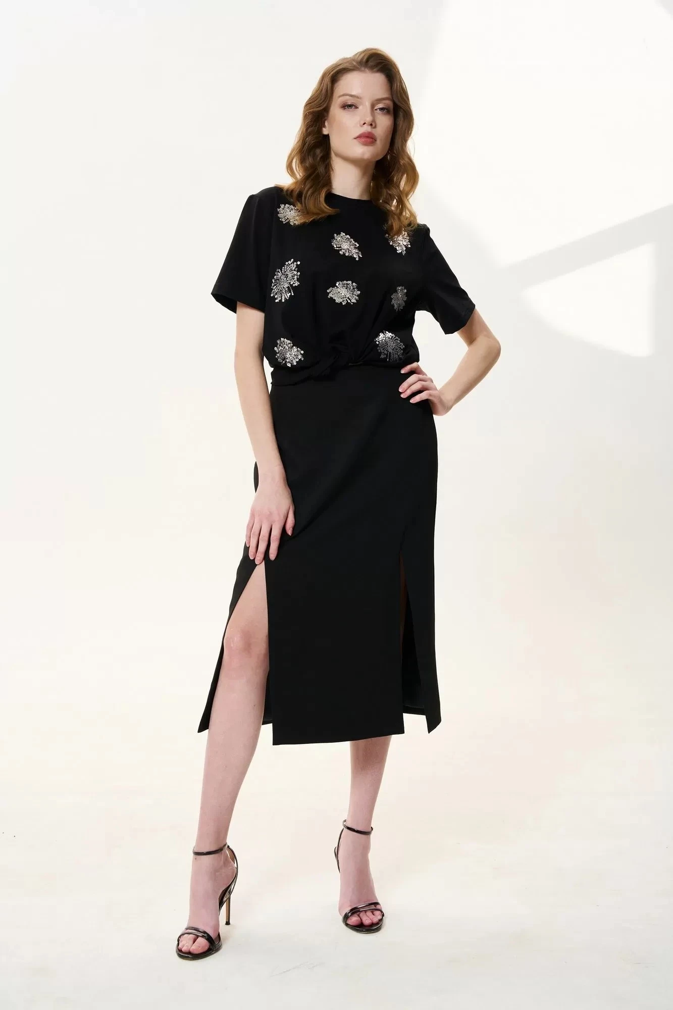 "Юбка миди прямого силуэта с разрезами по переду. Характеристики: