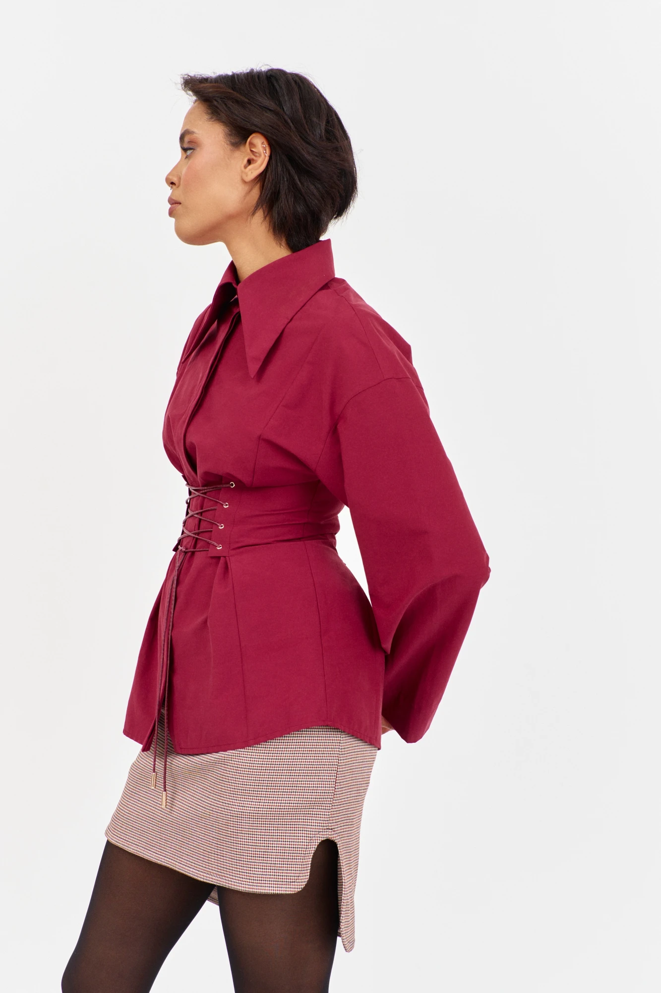 Юбка приталенного силуэта. Выполнена из плательной ткани в принте "гусиная лапка" пыльно-розовая. Низ юбки фигурный, по заднему полотнищу юбки застежка-молния.