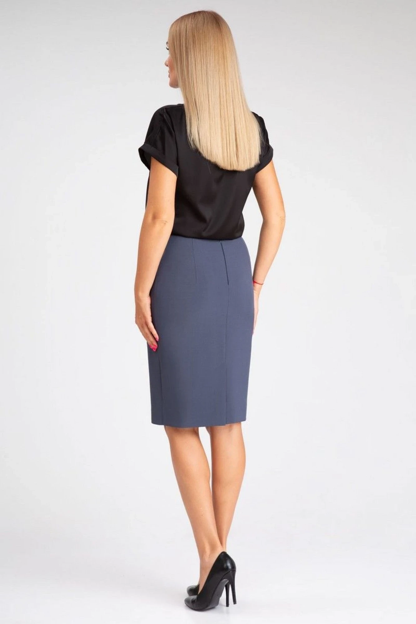 Высокая посадка на талии. Притачной пояс. Застежка в среднем шве спинки на потайную молнию и пуговицу на поясе.