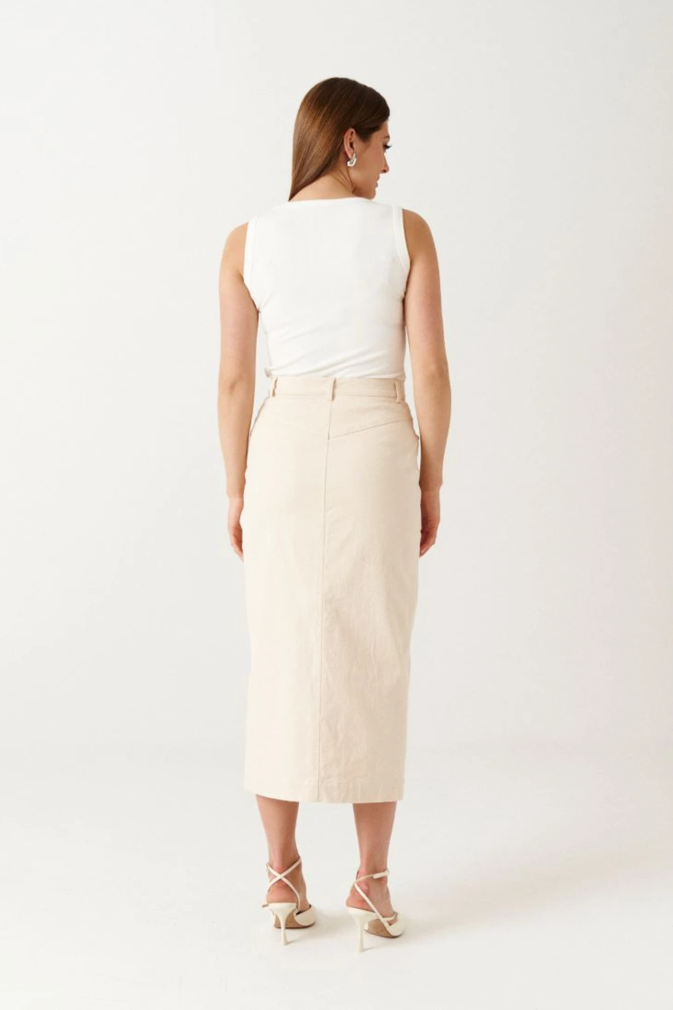 Юбка женская из джинсовой ткани с большим содержанием хлопка для повседневной носки. Юбка чуть заужена к низу. Верхний срез юбки обработан притачным поясом с застежкой на одну обметанную петлю и одну пуговицу, а также в среднем шве брюк имеется застежка на тесьму-молнию. Юбка имеет шлевки, что дает возможность носить ее под ремень. Переднее полотнище юбки имеет отрезную кокетку, а также два кармана и разрез к низу изделия. Очень нежная и стильная юбка, которая обязательно очарует вас своей идеальной посадкой. В данной юбке вы будете чувствовать себя уверенно и обязательно будете в центре всеобщего восхищения.