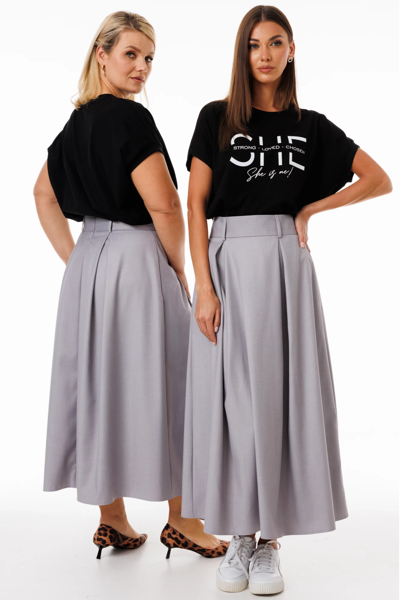 Эта удлиненная юбка-трапеция из костюмной ткани — воплощение грации и изысканности. Ее структура, будто сотканная из времени и традиций, создаёт ощущение лёгкости и свободы. Боковые карманы, скрытые в плавных линиях, несут в себе тайну и практичность, готовые хранить мелочи жизни. Встречные складки добавлют в каждый шаг нотку загадочности и элегантности. Юбка-трапеция: чарующий союз классики и современности.