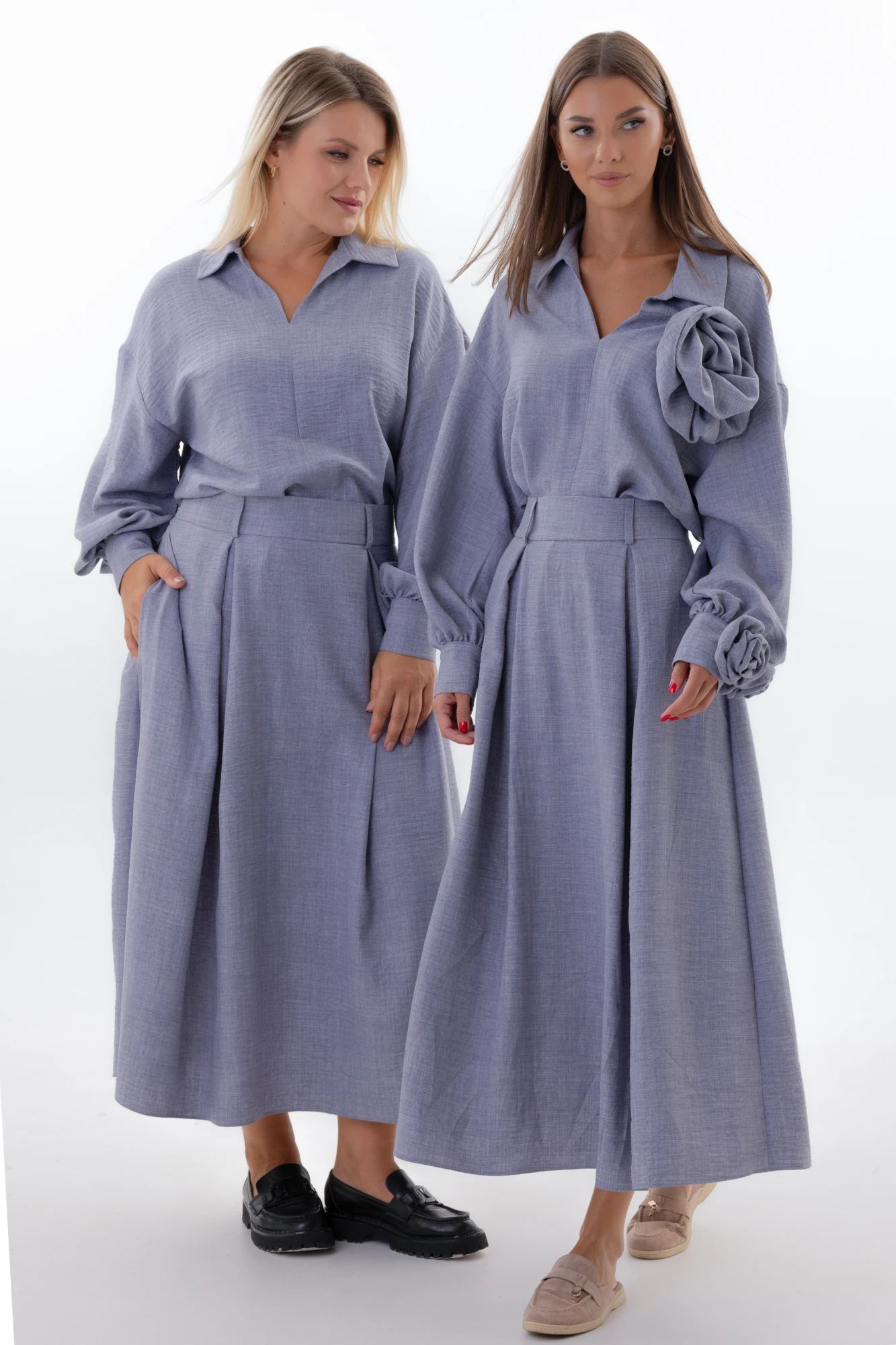 Эта удлиненная юбка-трапеция — воплощение грации и изысканности. Ее структура, будто сотканная из времени и традиций, создаёт ощущение лёгкости и свободы. Боковые карманы, скрытые в плавных линиях, несут в себе тайну и практичность, готовые хранить мелочи жизни. Встречные складки добавлют в каждый шаг нотку загадочности и элегантности. Юбка-трапеция: чарующий союз классики и современности.