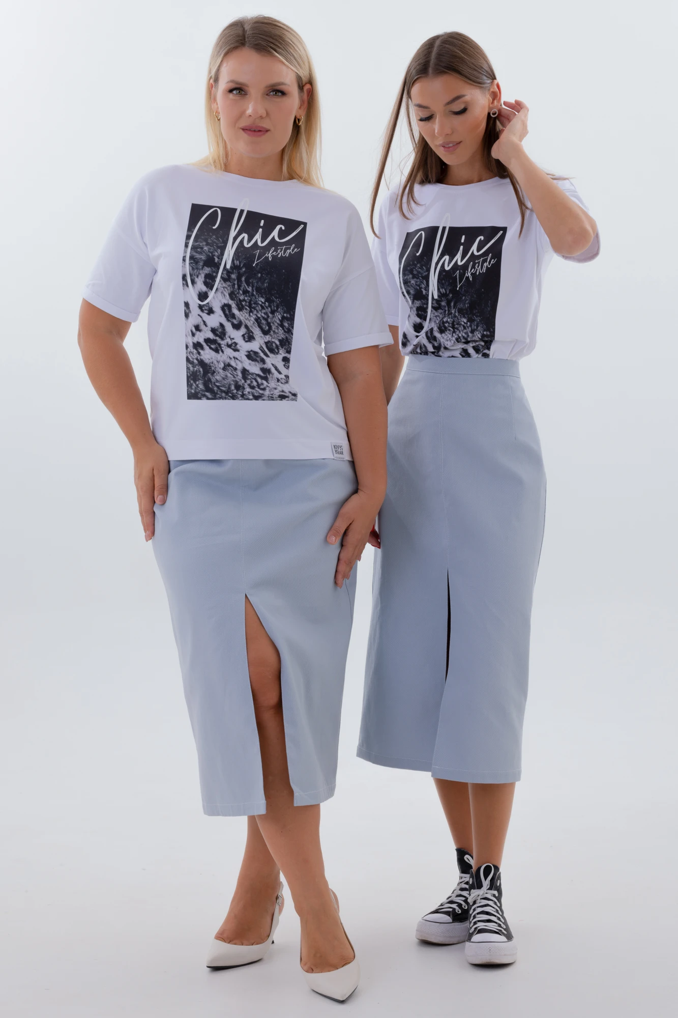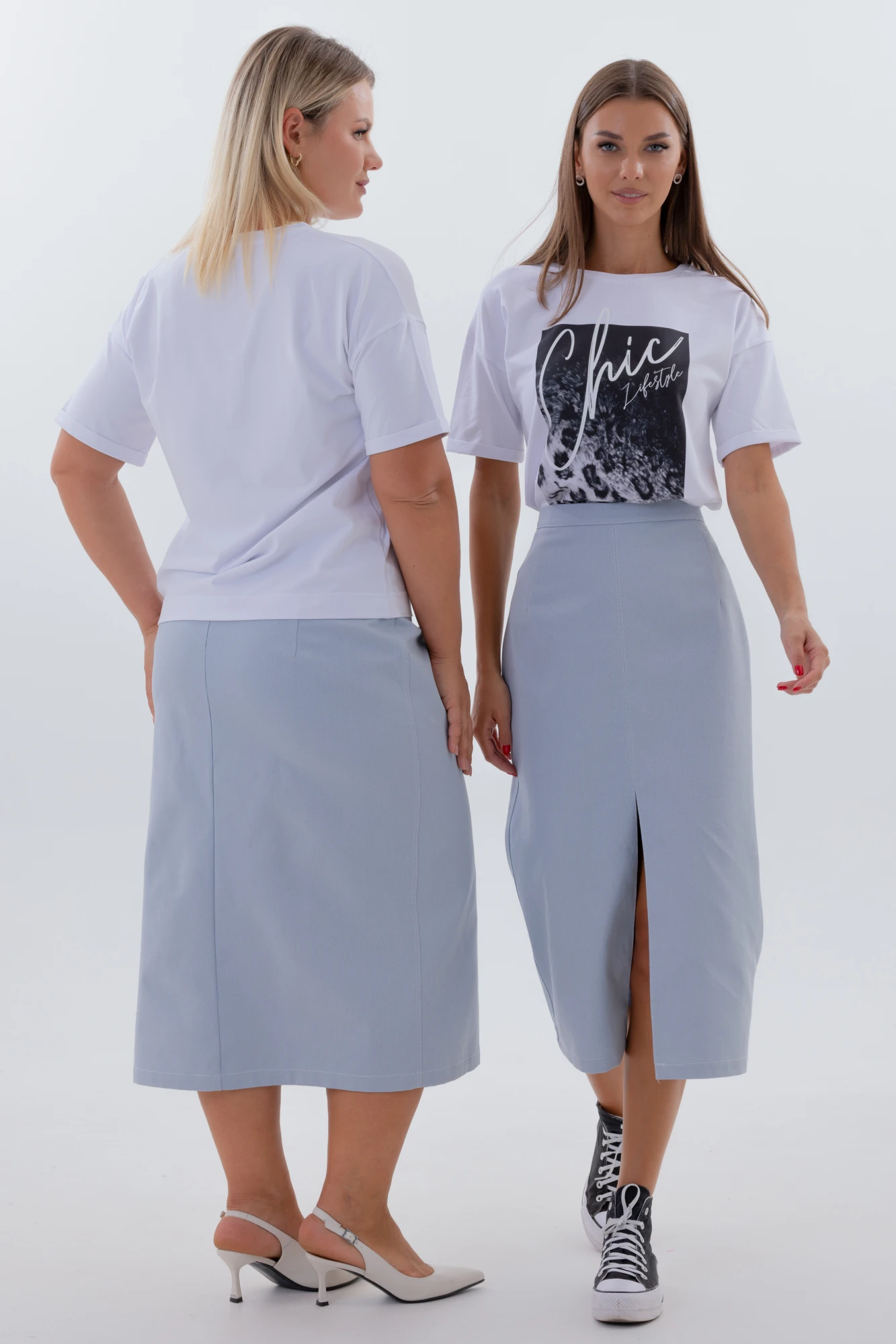 Kivvi Wear представляет обновленную классику в духе современной эстетики. Джинсовая юбка-карандаш из высококачественного плотного денима — это идеальное сочетание строгости силуэта и дерзкой фактуры. Модель приталенного кроя мягко подчеркивает линию бедер и плавно сужается к низу, создавая элегантный и женственный силуэт.