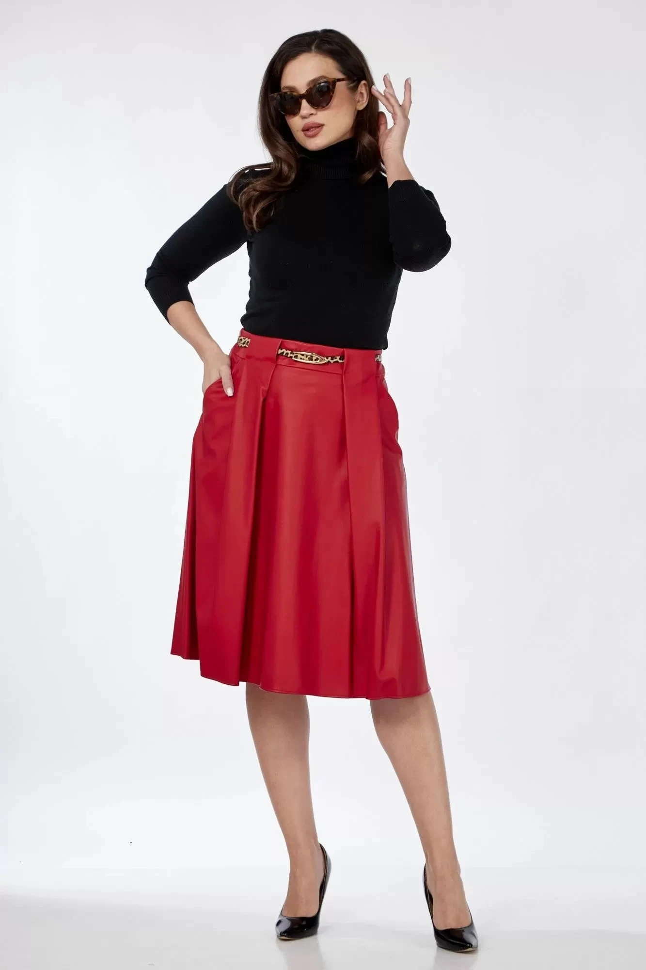 Юбка из эко-кожи, ткань тянется.Юбка без подкладки.По две складки спереди, и сзади. Есть два действующих кармана. Сзади молния в цвет ткани длинной 18 см. Ремень входит в комплект.Длина изделия во всех размерах 67 см. Размеры 42,44,46,48. ОТ 64,68,72,76. ОБ 92,96,100,104. Впрочем юбка полуклешь и объем по бедрам войдет и больший. Деликатная стирка при 30 градусах!