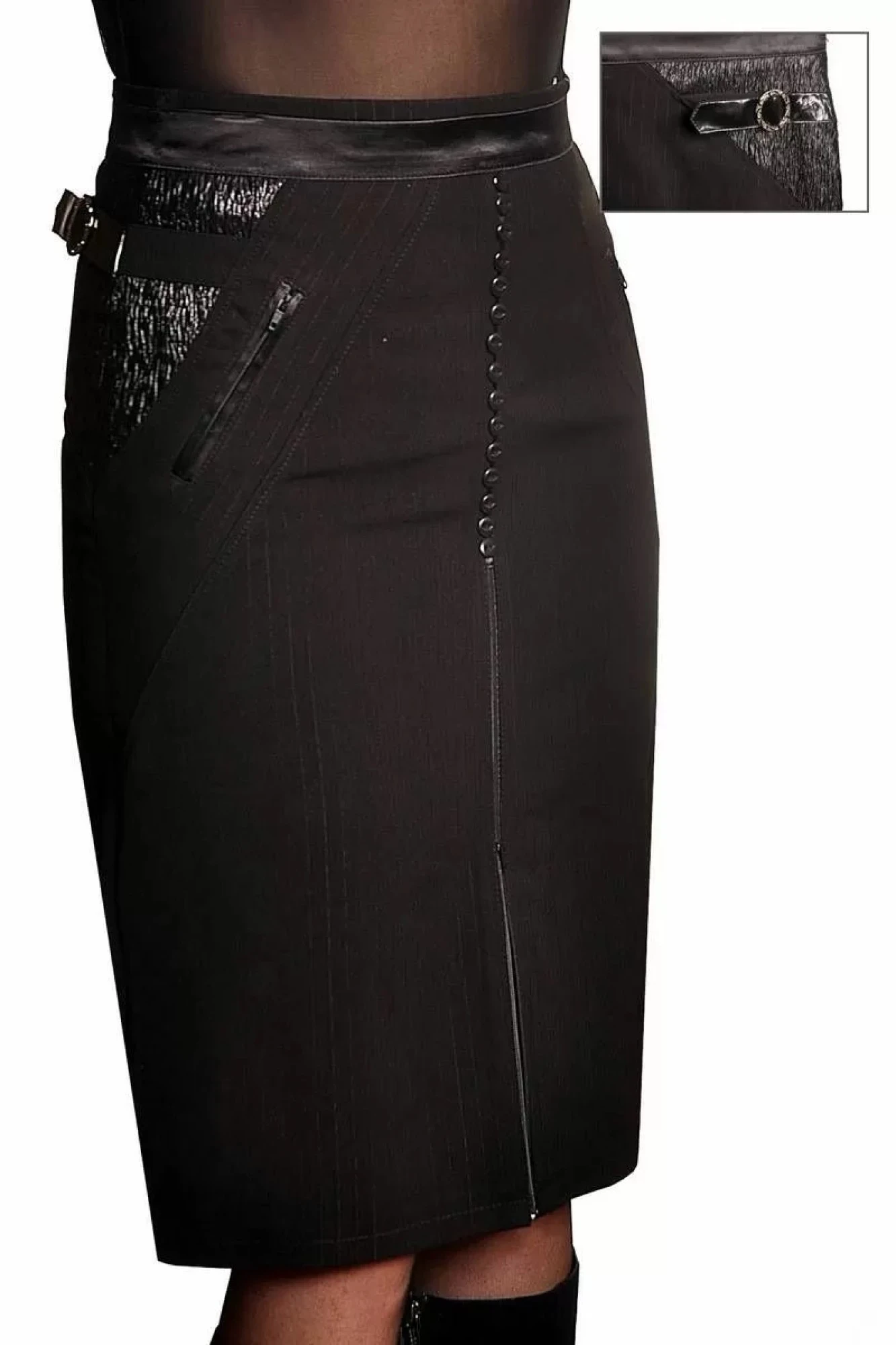 Юбка карандаш, на подкладке. На переднем полотнище центральный шов, который заканчивается молнией.Юбка на поясе,по спинке застежка потайная молния и одна пуговица. Размеры 46-48-50-52-54,объем талии 78-82-86-90-94,объем бедер 96-100-104-108-112,длина изделия 64-64-64-69-69.