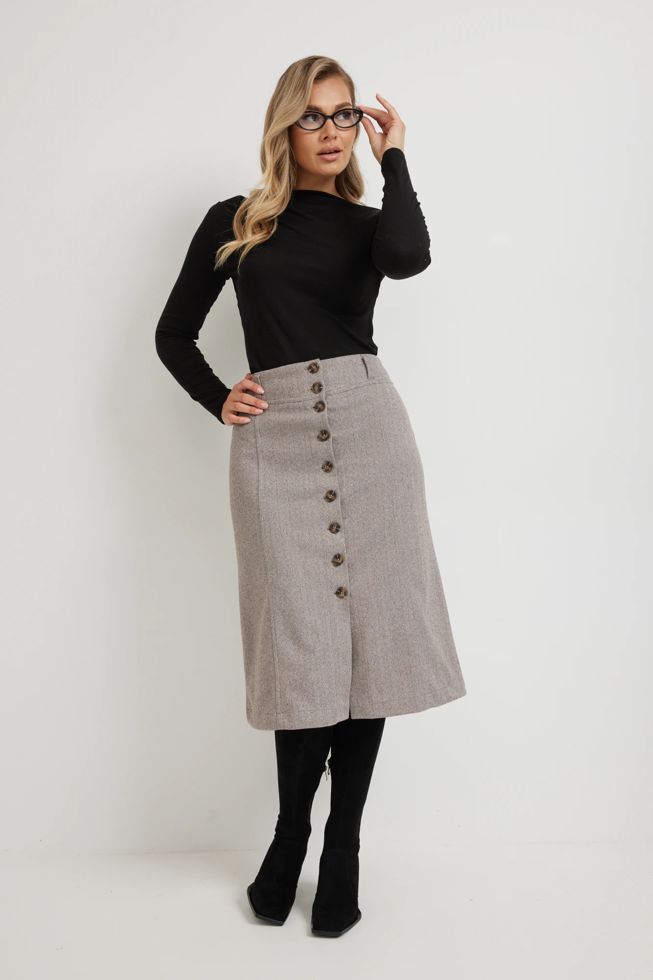 Стильная Юбка -трапеция длиной миди из мягкой приятной ткани "ёлочка". Юбку можно носить в демисезон: весна, зима и осень, подходит как на работу, так и для прогулок и отдыха. Модель с широким притачным поясом застёгивается на декоративные пуговицы, что придаёт особый шарм. Передние и задние половинки с рельефами.Для выбора нужного размера воспользуйтесь размерной сеткой ( таблица).