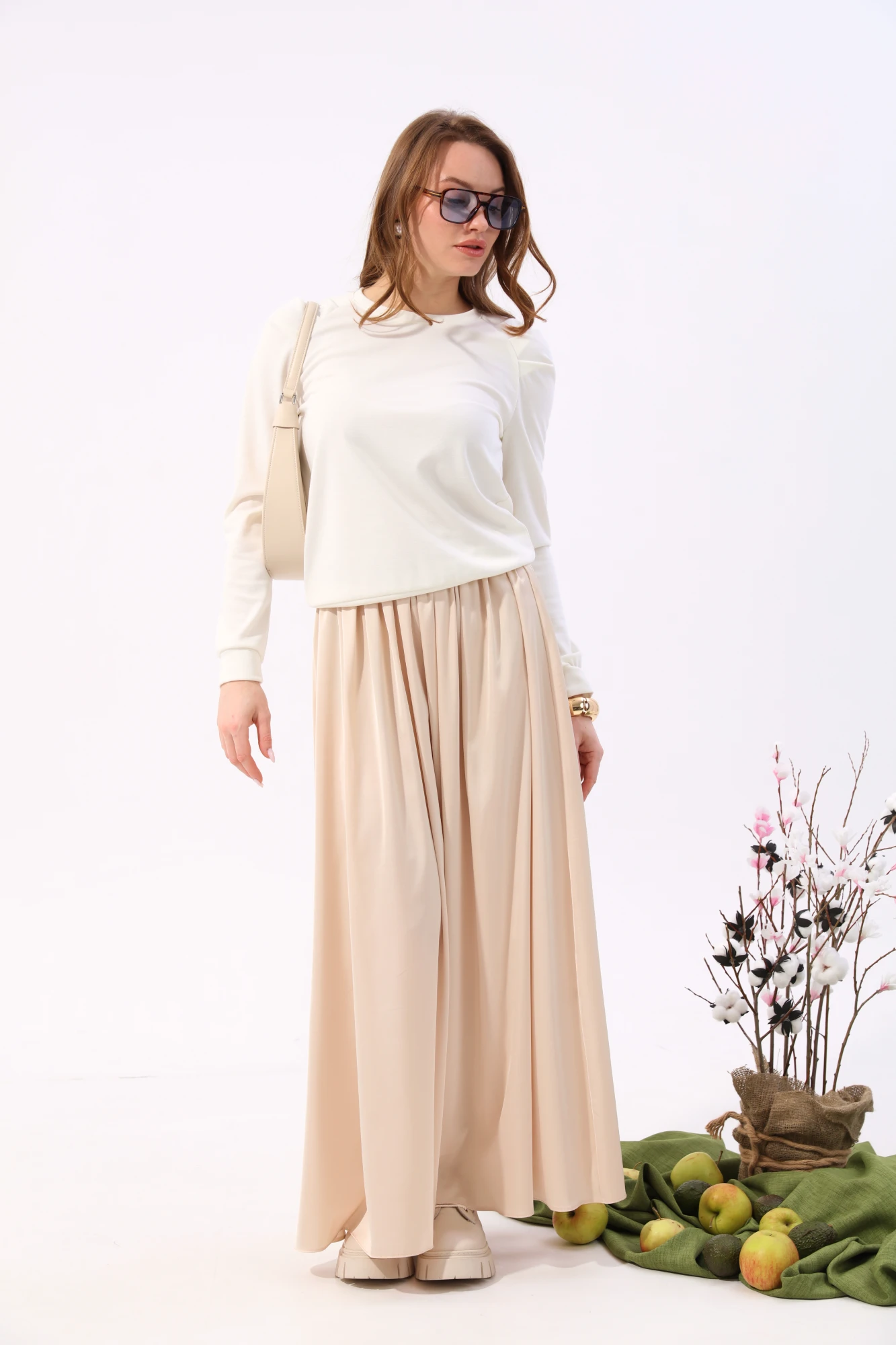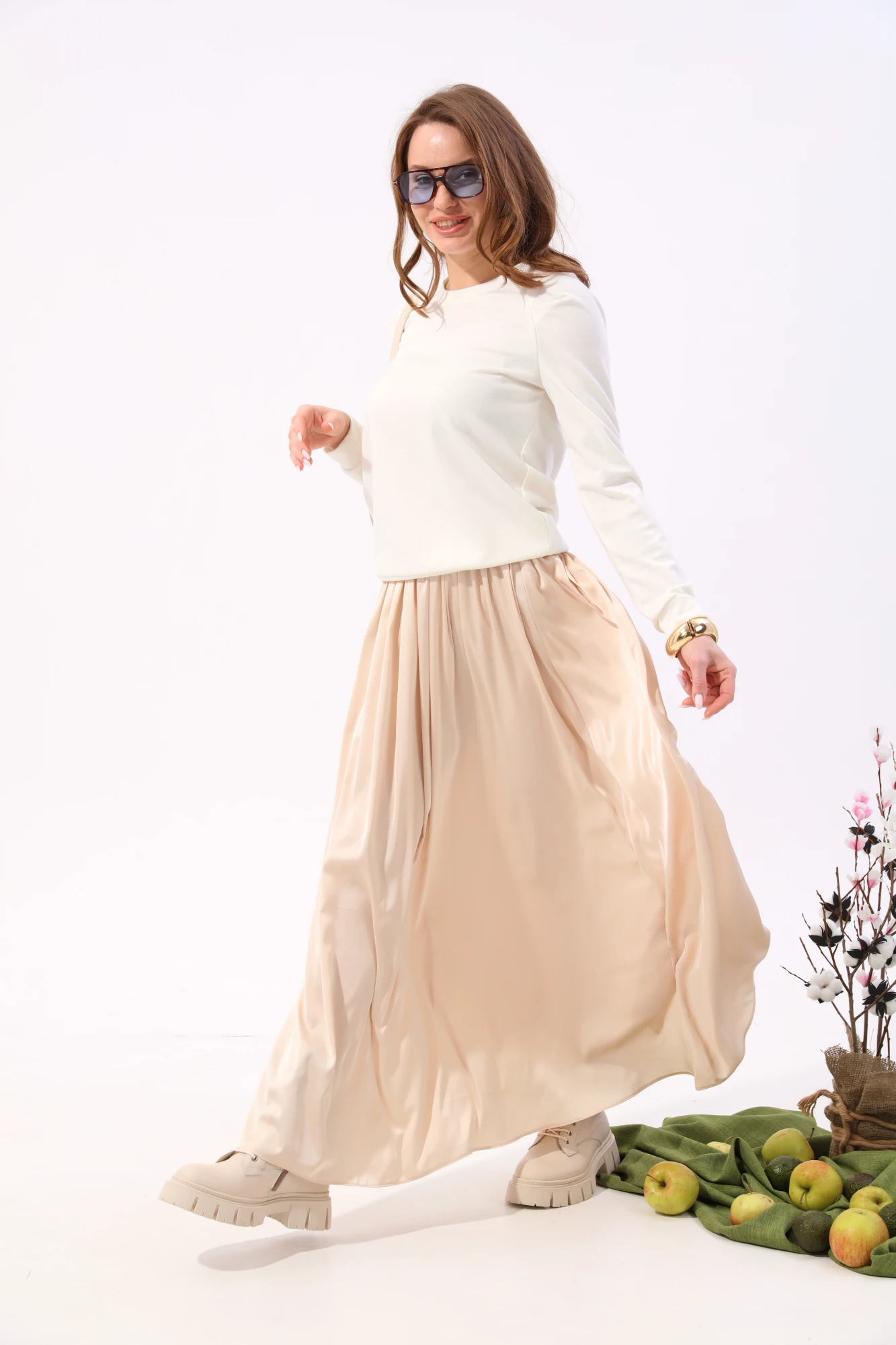 Юбка макси на резинке, драпирующаяся, расширенного силуэта. В бёдрах свободная.