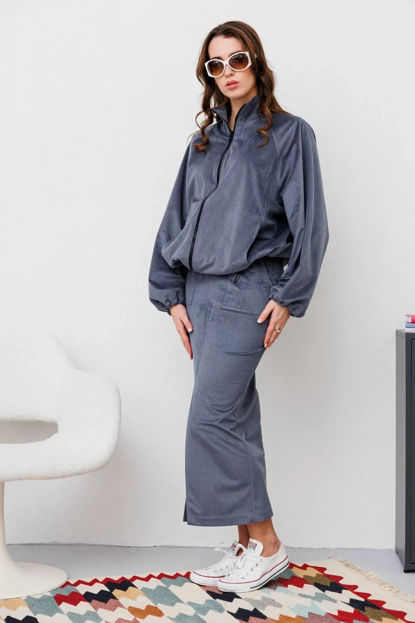 Юбка длиной миди прямая на резинке. Разрез по переду. Изделие без подкладки.