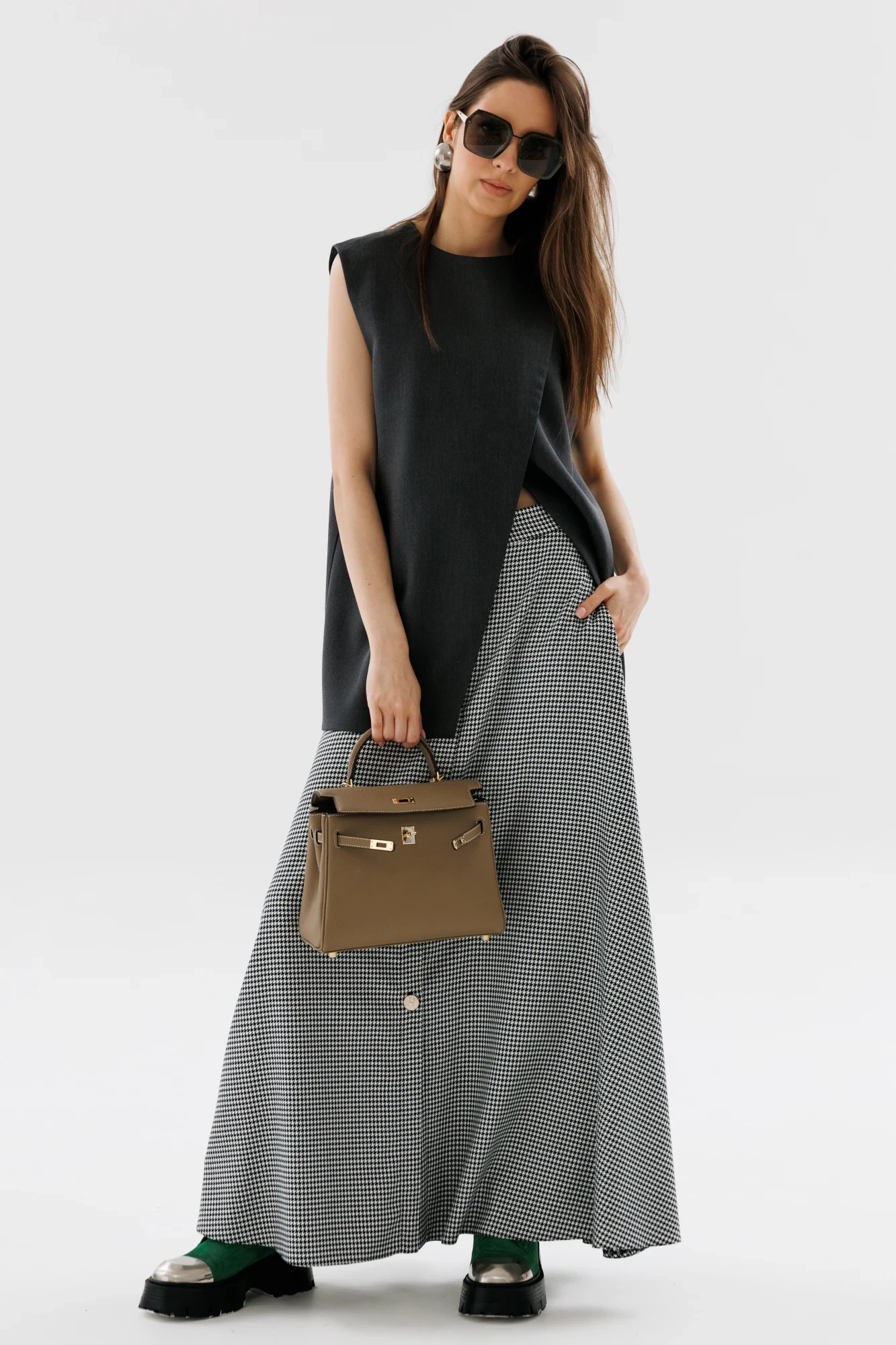 Юбка NikVa н722-1 чёрно-белая гус лапка