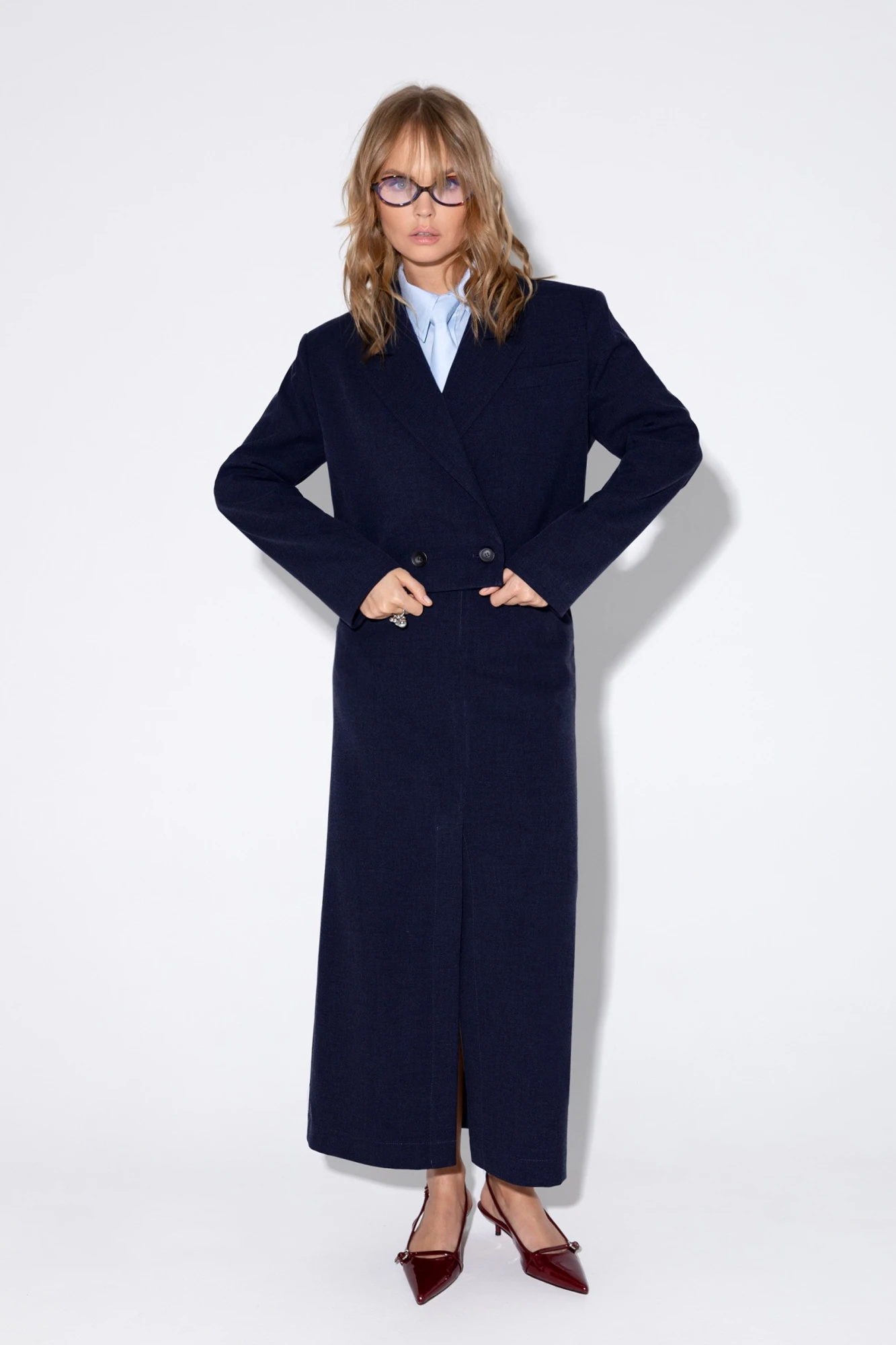 Прямая макси-юбки с высоким разрезом. Детали: притачной пояс со шлевками, талиевые вытачки, боковые карманы, застежка на потайную молнию, юбка на подкладке. Длина по боковому шву с поясом около 95 см в размерах 40-52 см