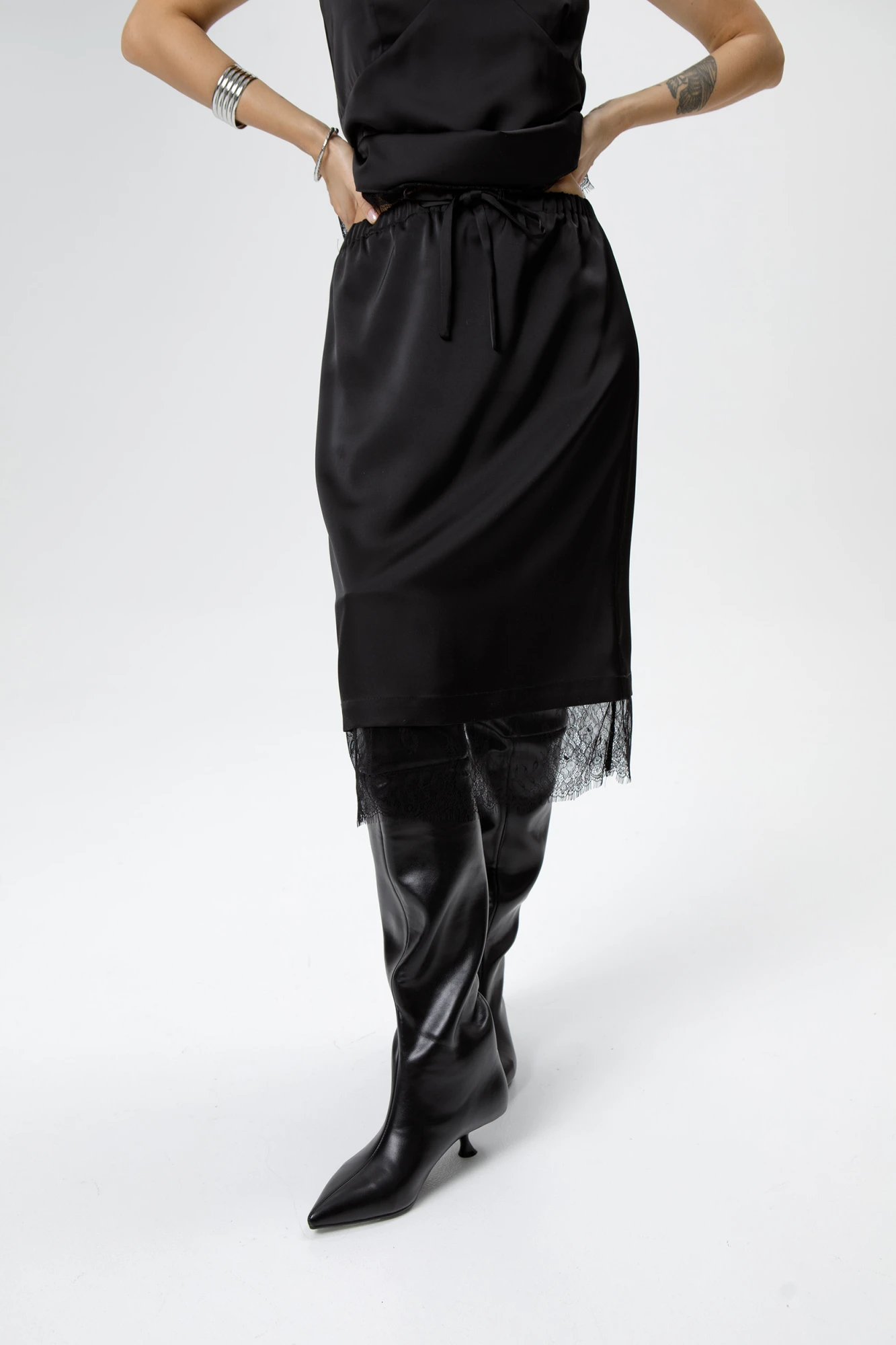 Прямая юбка в бельевом стиле с резинкой и кружевом