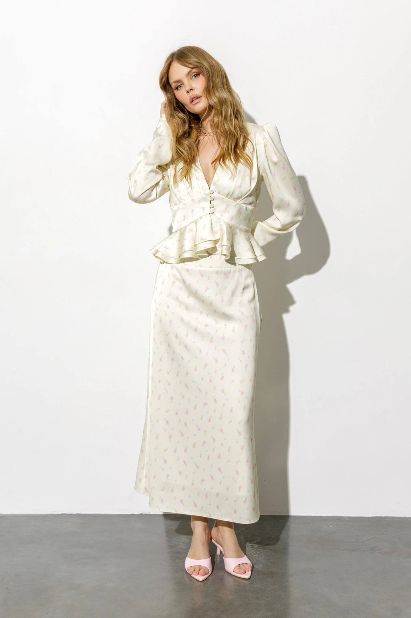 Юбка-миди из принтованного атласа (приобрести блузу с фото можно по арт. 6796).