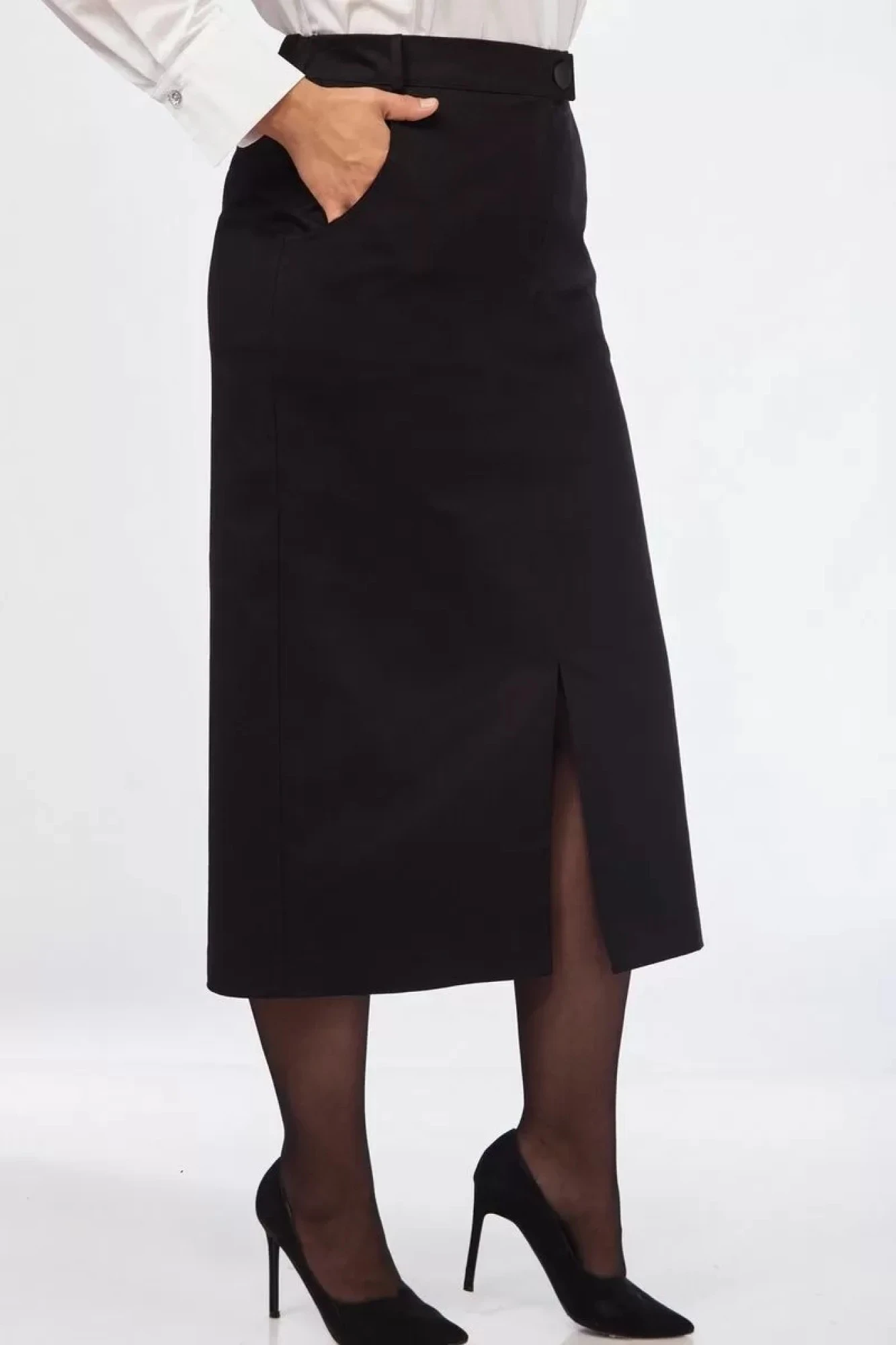 Юбка прямого силуэта зауженная к низу, длинной мидакси, на притачном поясе, в который по бокам вставлена эластичная тесьма. По переду и спинке юбки выполнены вертикальные швы. По переду расположены функциональные карманы и разрез по центру, высотой 29см. На заднем полотне юбки отрезная кокетка. Застёжка по переду на тесьму-молнию и петлю-пуговицу. Классическая юбка с декоративными отстрочками подойдет для любого гардероба и будет комфортной и уместной.