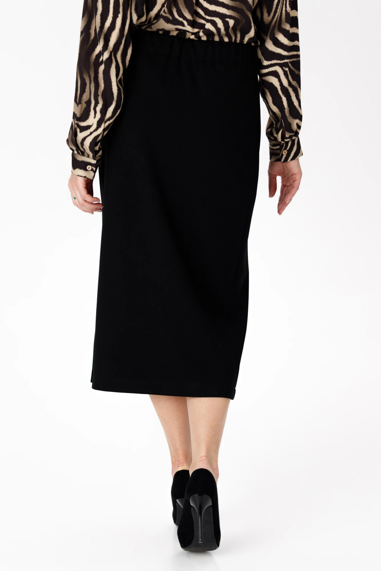 "Элегантная юбка-карандаш с разрезом. Эта юбка-карандаш станет незаменимой частью вашего гардероба, сочетая в себе стиль и удобство. Изготовленная из высококачественной плотной ткани, она подчеркнёт вашу фигуру и добавит образу изысканности.