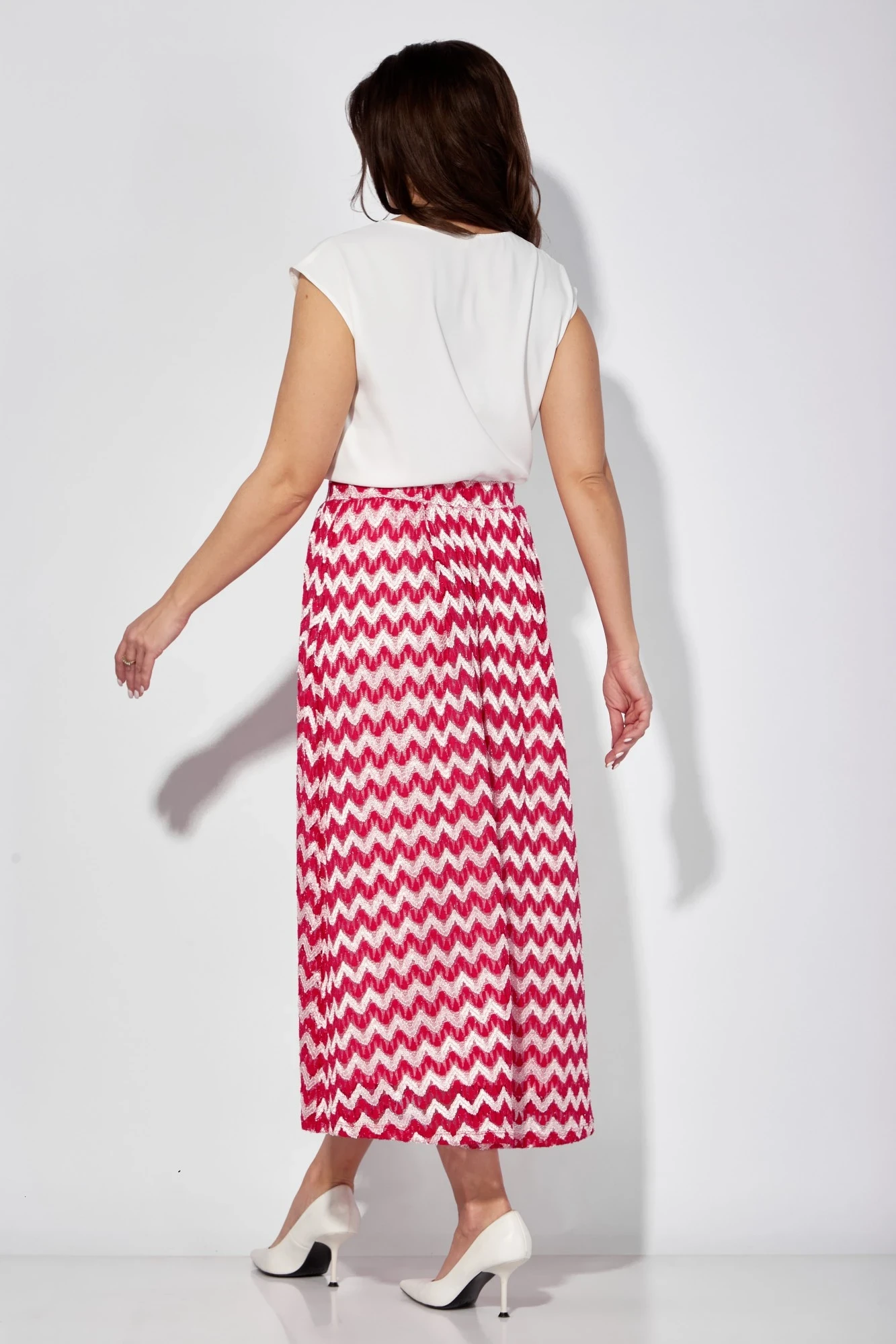 Юбка из трикотажного полотна с рисунком на "сетке". Юбка расширенная к низу, присобрана по талии отрезным поясом с резинкой. Юбка на трикотажной подкладке.