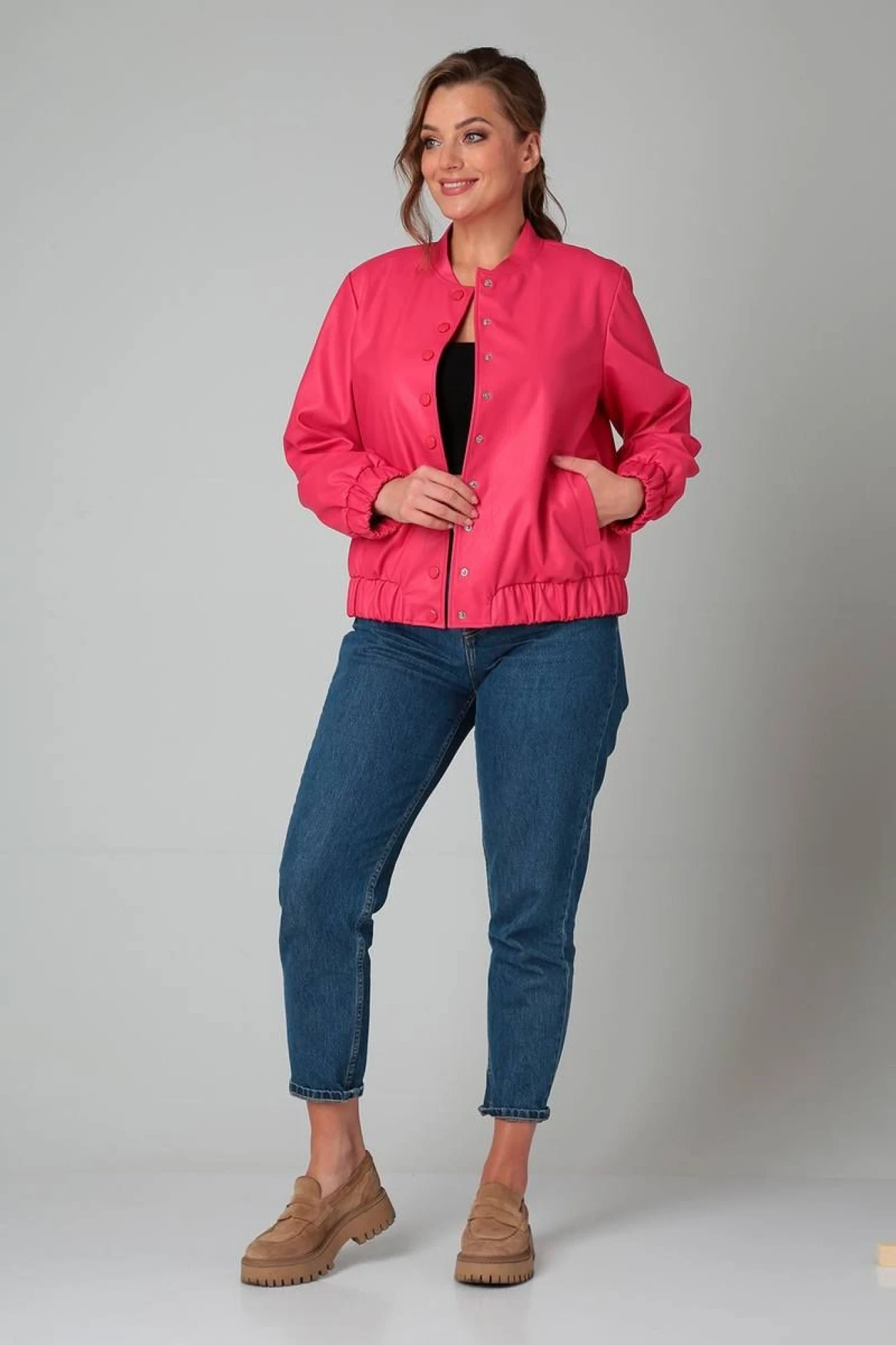 Куртка женская из эко-кожи на подкладке. Центральная застежка на кнопки. По переду наклонные карманы с листочкой в области талии. Спинка цельная. По низу куртки притачной пояс с резинкой, воротник стойка. Рукава втачные одно-шовные, по низу на манжете с широкой резинкой.
