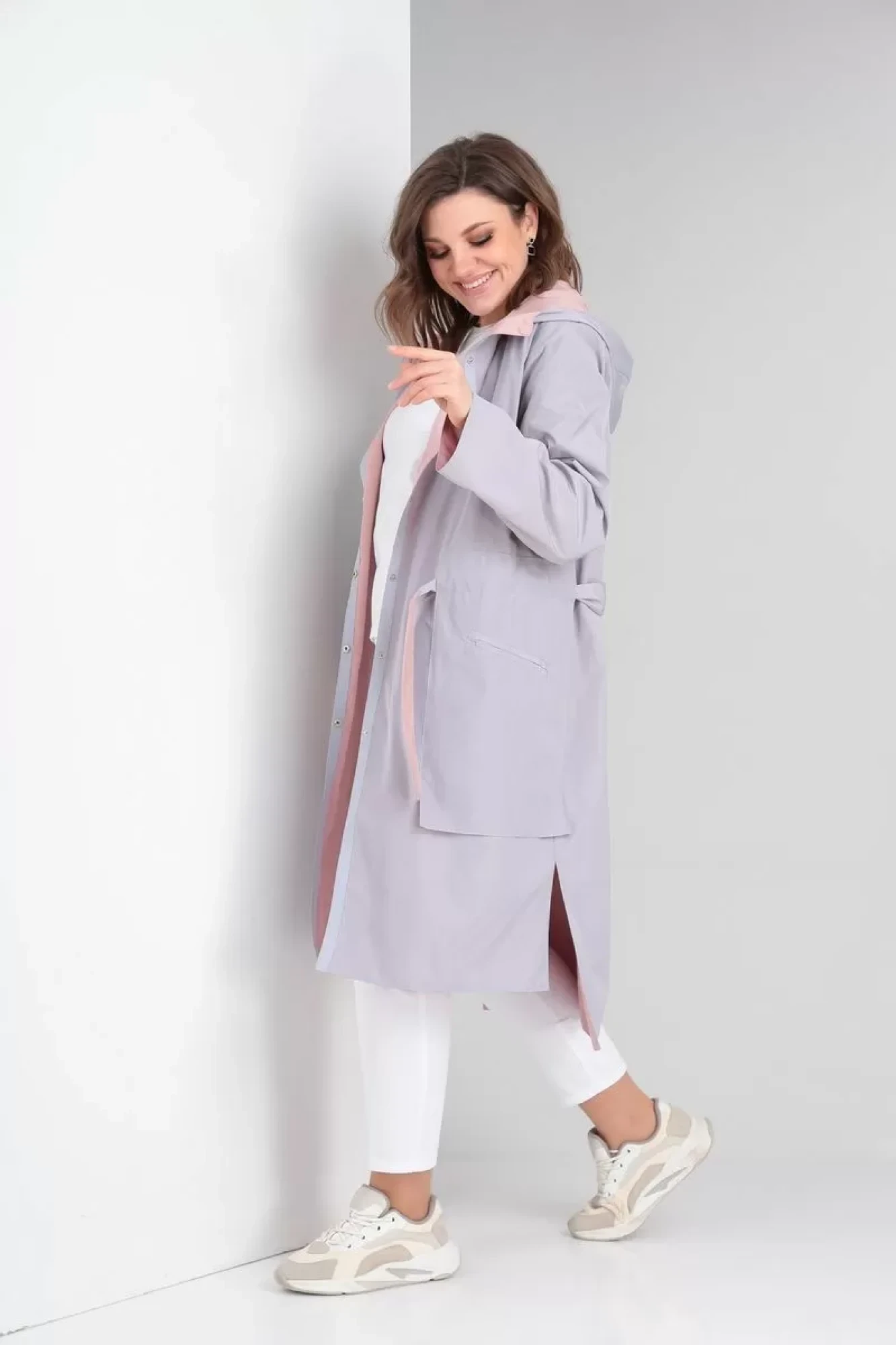 Кардиган женский прямого силуэта с застёжкой на кнопки двусторонний. Перед одной стороны с накладными карманами, которые образуют кулисы сверху и отлетные снизу. Вторая сторона плаща с карманами "с листочкой". Рукав втачной одношовный. Воротник - капюшон.