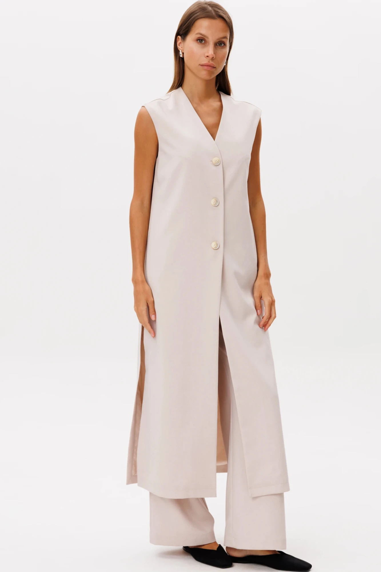 Кардиган свободного кроя, на подкладке из хлопка, застежка центральная на петли-пуговицы, функциональные карманы в боковых швах, по бокам разрезы, зафиксированные отделочной строчкой. Можно носить в качестве верхней одежды, используя в повседневных образах. Рекомендуем брюки из нашей коллекции в цвет основной ткани арт. 2393, или изделия из атласа, костюм арт. 2312, также можно носить с юбками, джинсами.