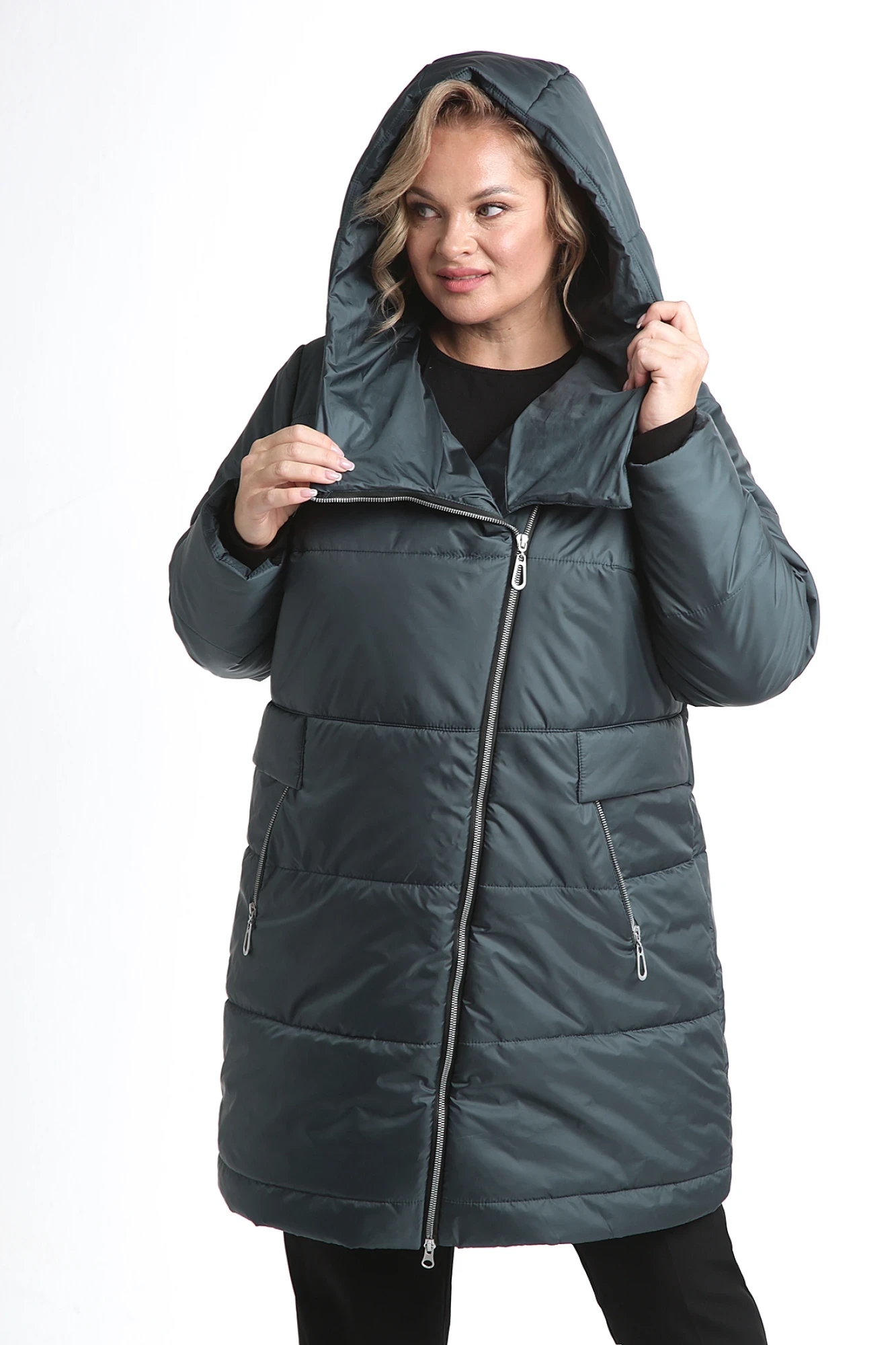 Модная и стильная удлиненная куртка прямого силуэта, которая способна подчеркнуть Вашу изящность и сделать неотразимой! Для всех модниц в поисках комфорта этой осенью безумно актуальными являются куртки с объёмными, пришивными капюшонами. Для пошива изделия используется плащевая ткань и утеплитель HOOPON. Простые линии в изделии придают женскому облику изысканность и лаконичность. Спинка со средним швом. На полочках куртки есть небольшие нагрудные вытачки, прорезные карманы с молнией, верхнюю часть которых прикрывают клапаны. Застёжка куртки на молнии, слегка смещённая в левую сторону. Рукав одношовный, втачной, длинный. Куртка на ветрозащитной подкладке. Подходит для девушек любого возраста, обеспечивает комфорт и лёгкость движениям.