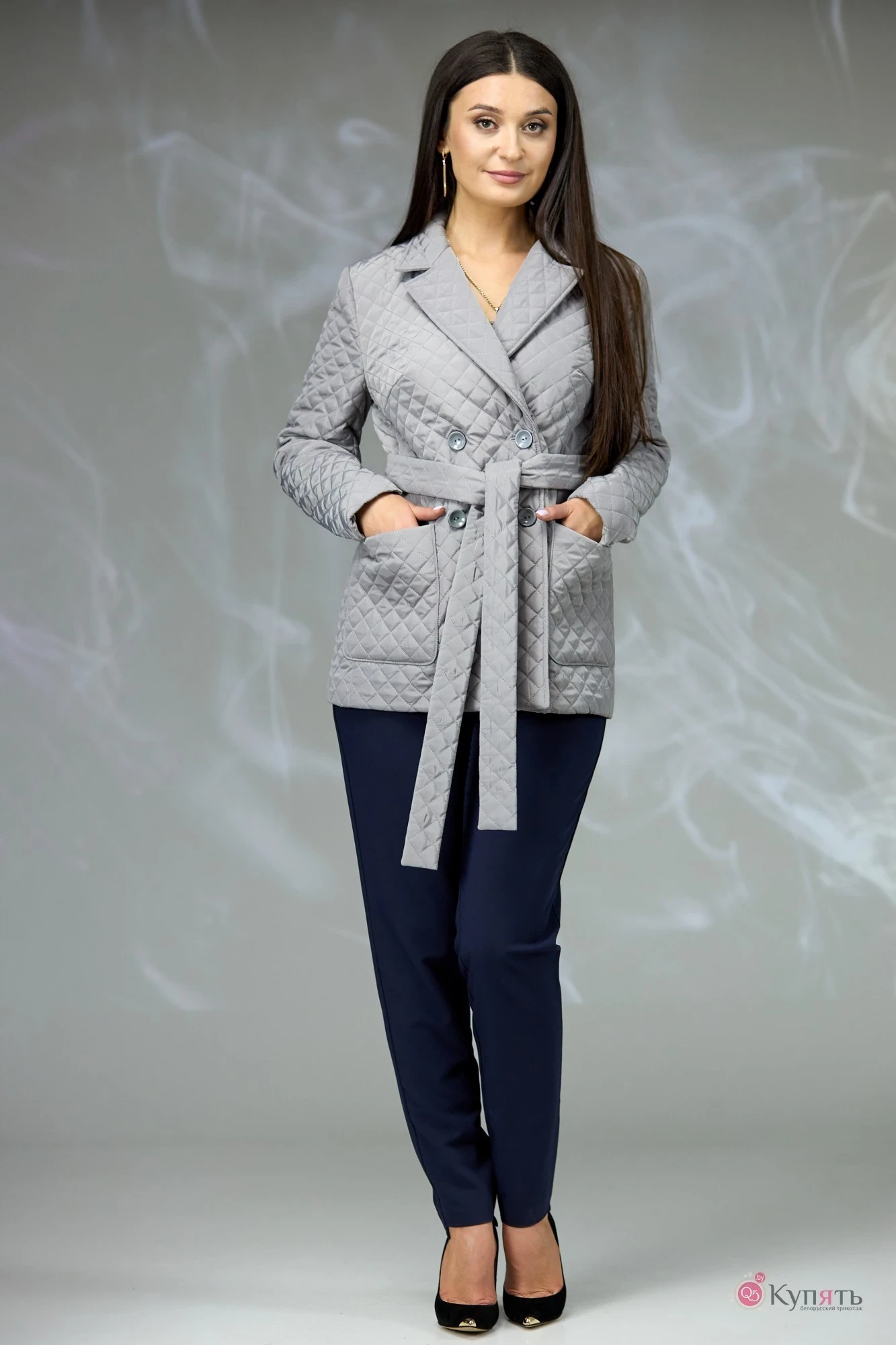 Демисезонный женский жакет свободного кроя со спущенным плечом. По спинке средний шов. По переду накладные карманы. Рукав одно-шовный прямой, с отложной манжетой. В комплект входит съемный пояс в цвет жакета. Модель подойдет на рост 164-170 см