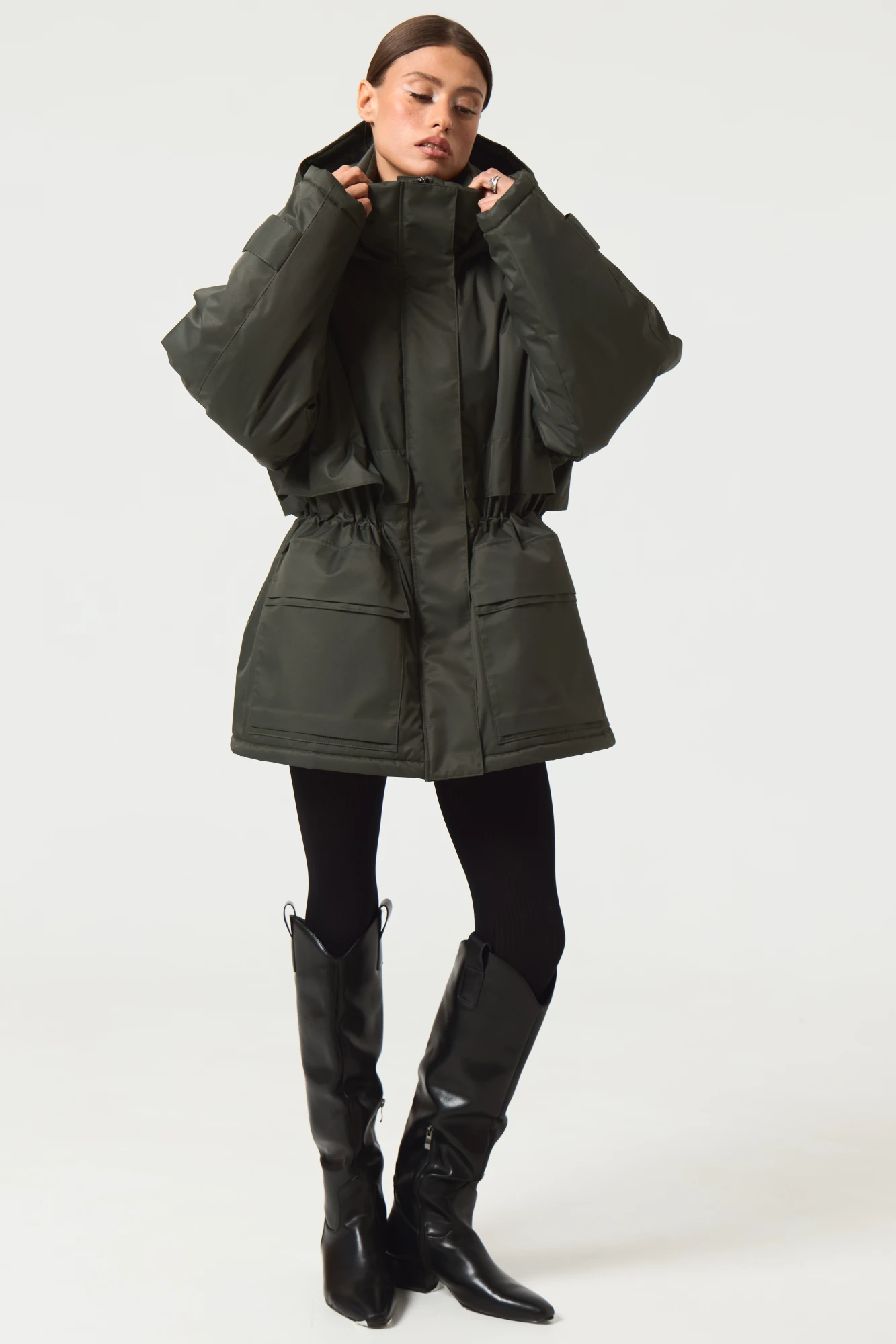 Утепленная женская куртка с капюшоном. Застежка на молнию и кнопки. По переду изделия карманы