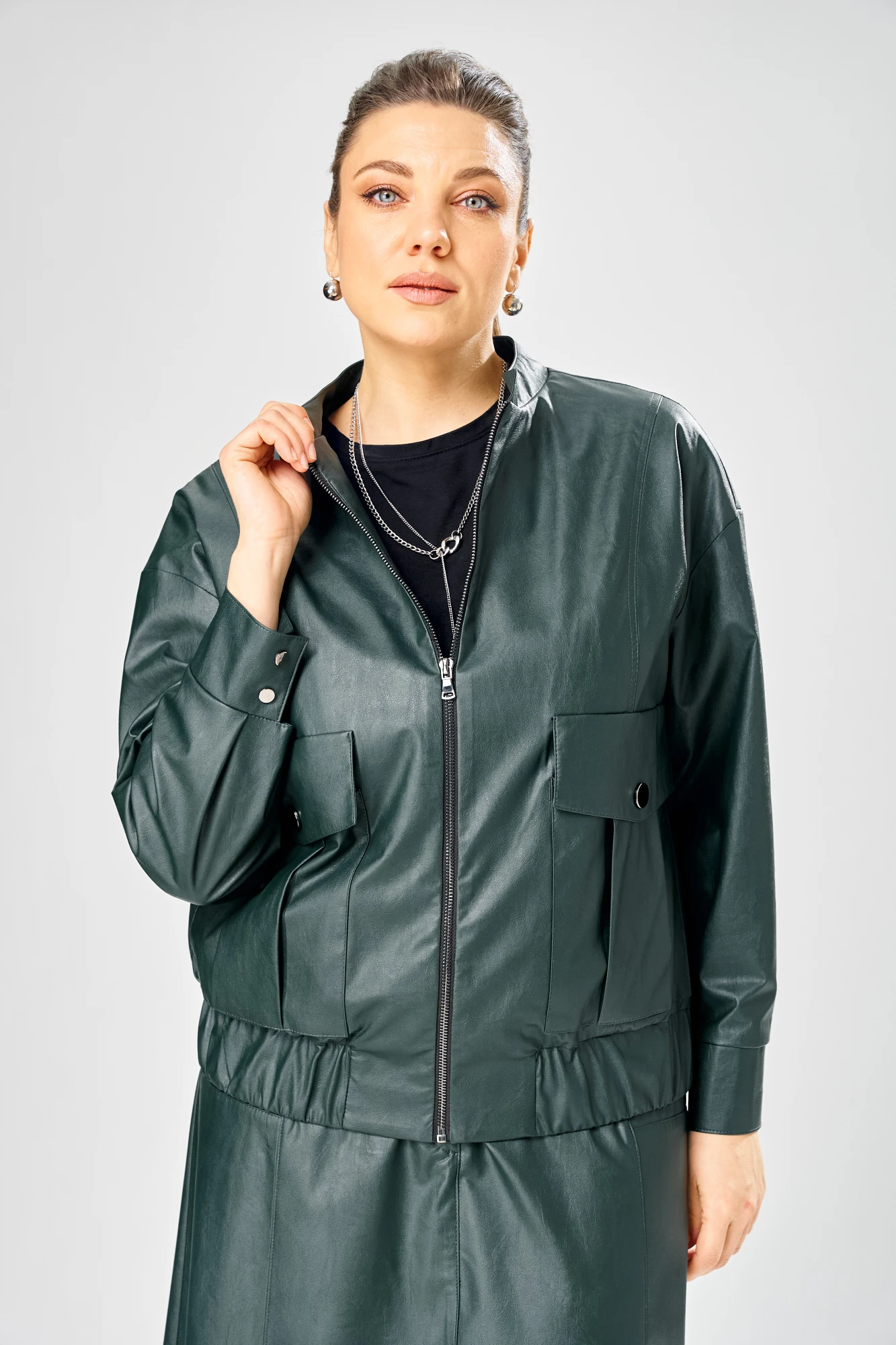 Стильный женская куртка свободного силуэта, из эко-кожи.