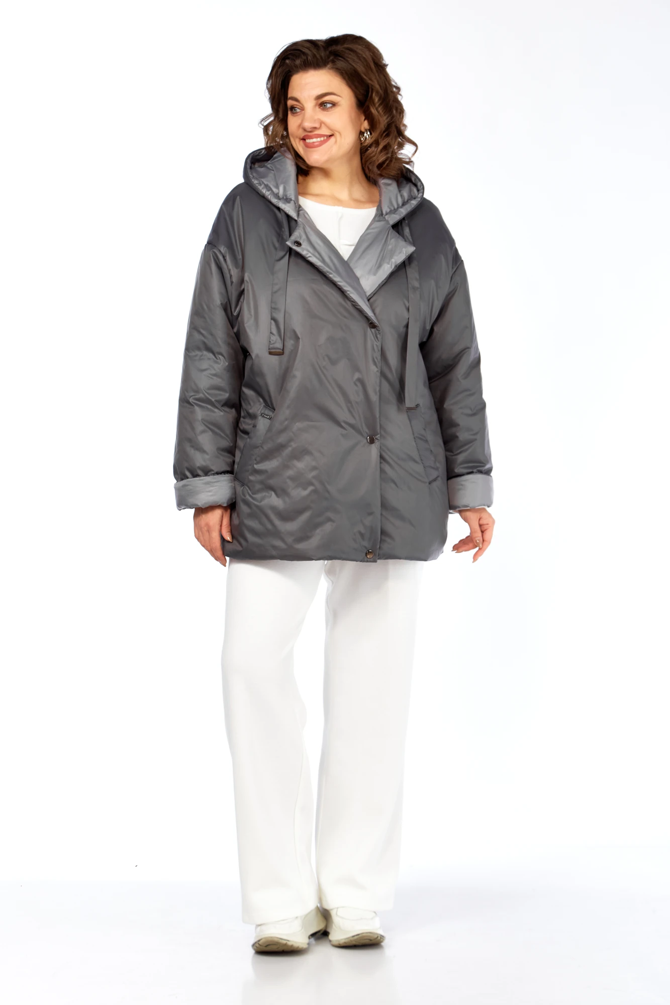 Куртка женская двухсторонняя с центральной бортовой застежкой на кнопки. Спинка простая. Перед с боковыми карманами с одной стороны "с листочкой", а внутренняя сторона с карманами в боковых швах. Рукав втачной одношовный со спущенной линией плеча. Воротник-капюшон с кулисой. Есть пояс на резинке с застежкой на пряжку. Куртка утепленная. Температурный режим до - 10 градусов. Фурнитура может отличаться от заявленной на фото.