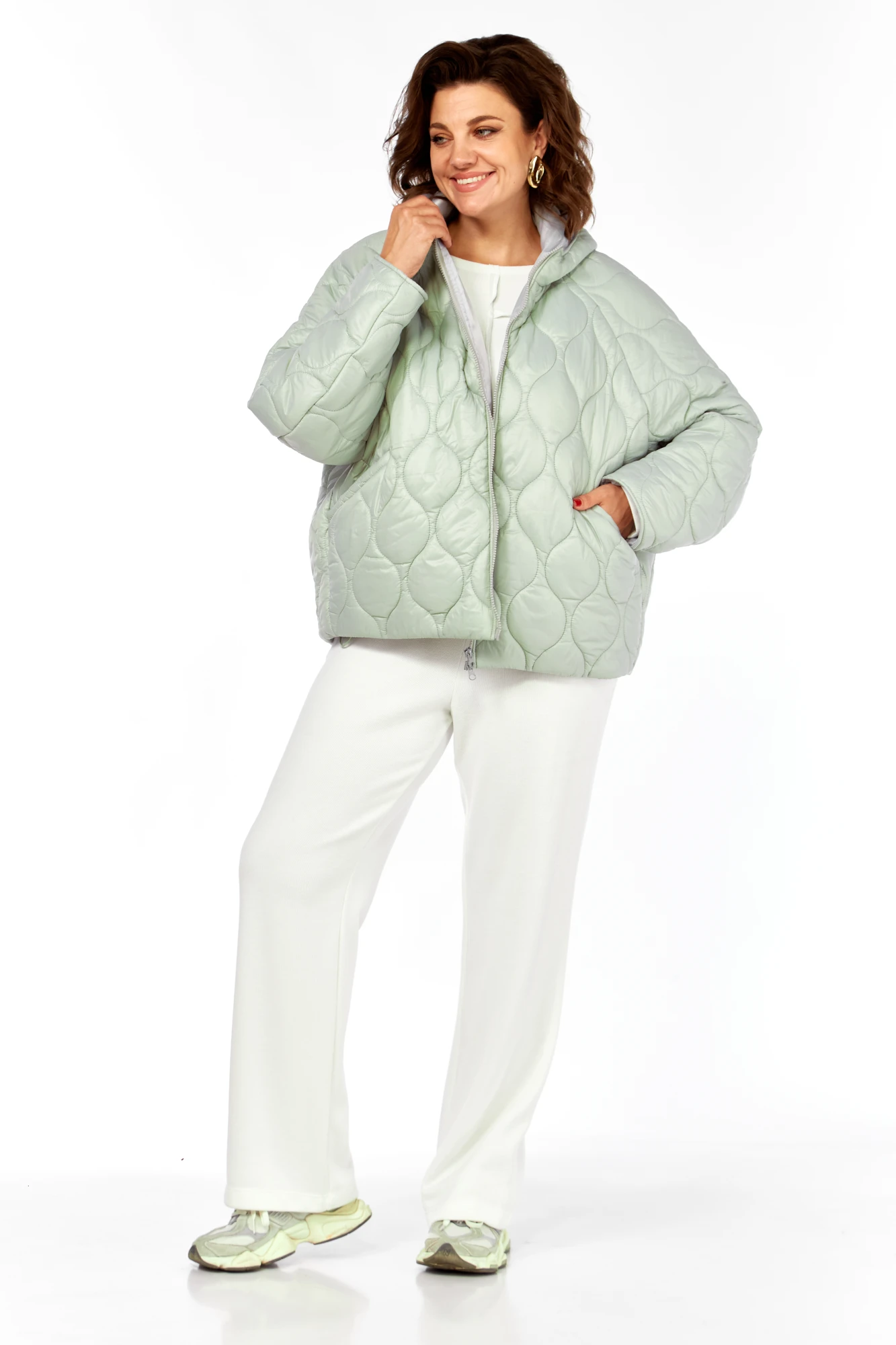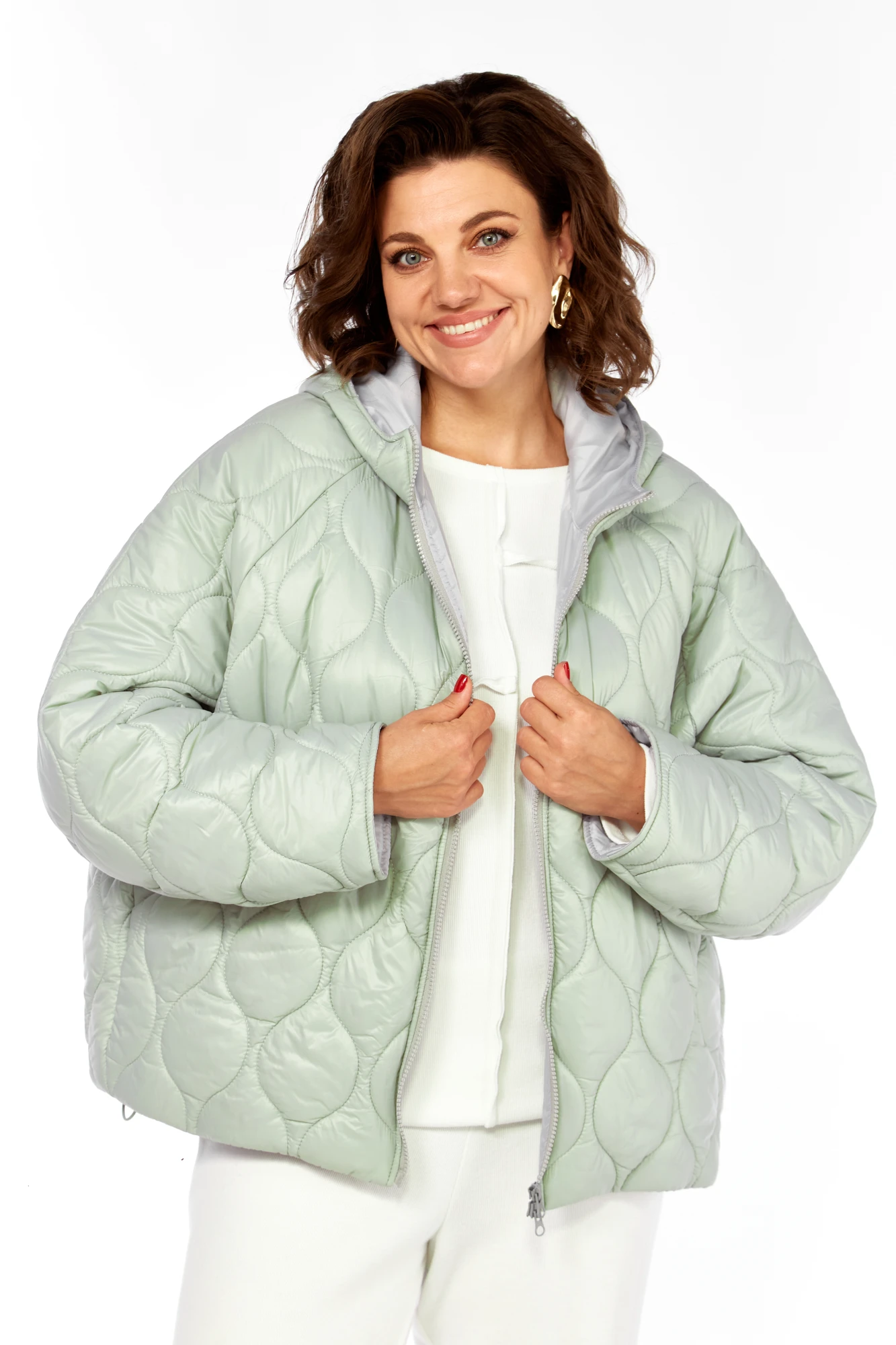 Куртка женская, О-образного силуэта с центральной застежкой на молнию. Спинка простая. Перед с боковыми карманами "с листочкой". Рукав-реглан . Воротник-капюшон. По низу куртки в подкладке обработана кулиса со шнуром и регулятором. Куртка на утеплителе. Температурный режим до -5 градусов.