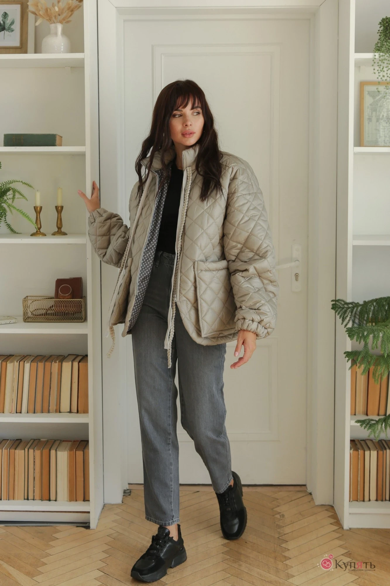 Куртка просто роскошная, легкая, приятный цвет, очень украшают накладные карманы,закругленный низ, стильная веревочка, а также рукава на резинке. Очень рекомендую, подойдет с любым низом, хоть с брюками, хоть с юбочкой.