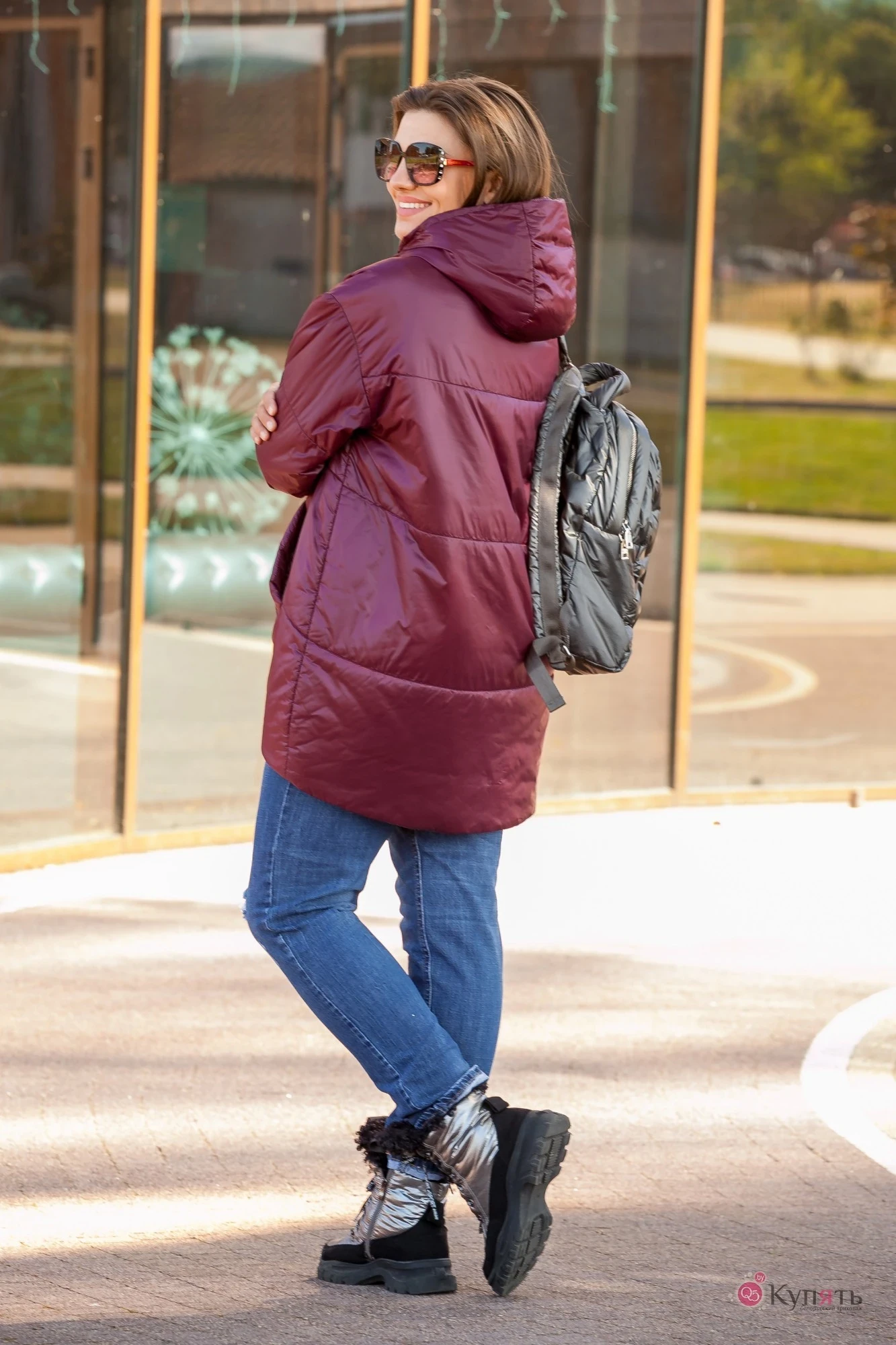Очень объемная куртка, оверсайз. Хорошего качества.