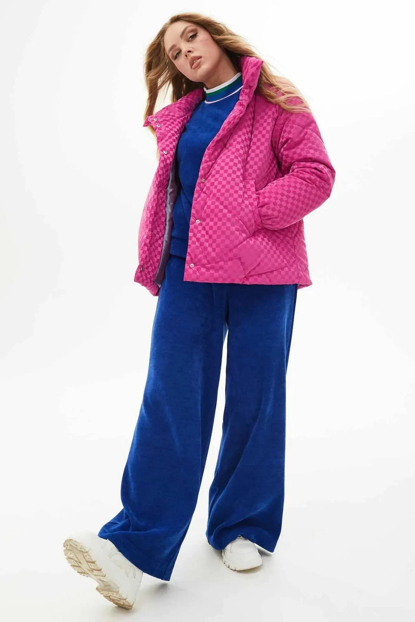 Куртка женская утеплённая осень-зима, прямого силуэта, со спущенными плечами, выполнено из ткани лаке на утеплителе изософт. По переду прорезные карманы с листочкой и застёжка на 7 кнопок. Воротник стойка. Рукава одно шовные втачные. Низ рукавов собран на эластичную тесьму резинку. Подкладка простёгана с утеплителем изософт.