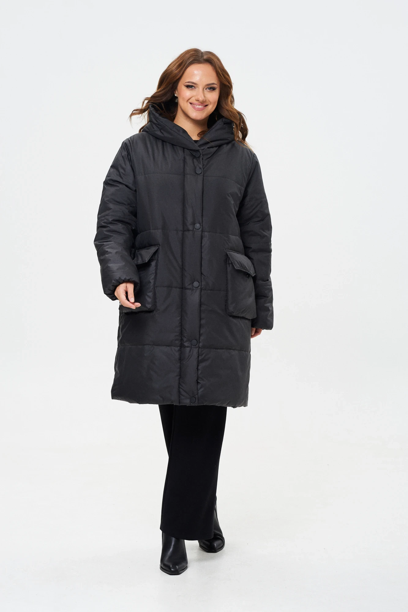 Утепленная женская куртка свободного кроя c капюшоном, сезон евро зима с горизонтальной обстрочкой. Утеплитель микрофайбер (200г/м2),изделие предназначено для эксплуатации в осенне-зимний-весенний период с температурой воздуха до -10 градусов по Цельсию (указанная температура комфорта может зависеть от индивидуальной восприимчивости к холоду) . По переду накладные карманы с клапаном и застежкой на кнопку. Рукав прямой, втачной. Спинка цельная. По переду куртка на молнии и с планкой, застегивающейся на металлические кнопки. Изделие из ткани с водоотталкивающим эффектом.