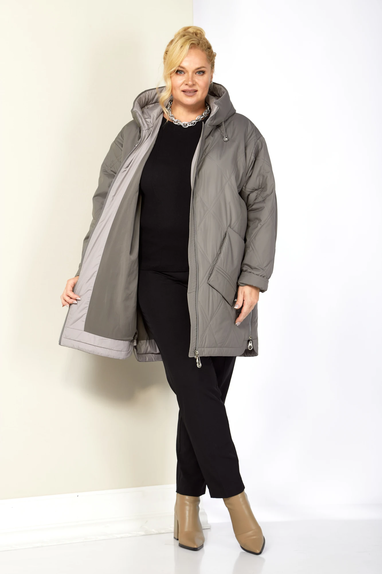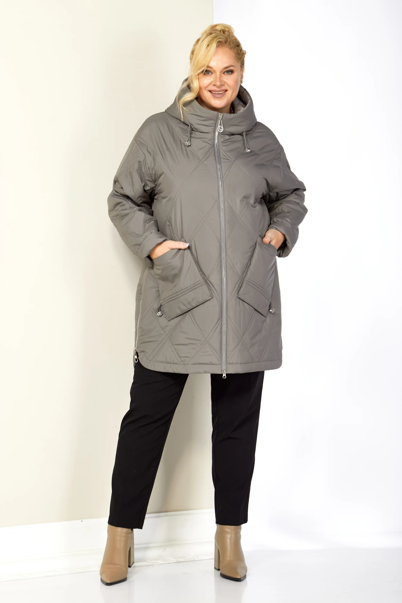 Стильная демисезонная куртка сезона осень-весна, прямого силуэта, с воротником-стойкой переходящим в капюшон. Куртка повседневная удобная в носке, лёгкая в уходе и теплая. Застежка центральная на молнии с двумя бегунками, которая подарит вам свободу движения и подойдет для автоледи. Изделие выполнено из курточной ткани высокого качества, на тонком мягком синтепоне. На подкладке. Капюшон не съемный, регулируется декоративным шнуром. По переду куртки удобные глубокие накладные карманы на внутренних магнитах. Рукав со спущенной линией плеча, длина регулируется с помощью отворота. С внутренней стороны куртки имеется внутренний карман. Нижняя часть боковых швов декорирована молниями (функциональные), что делает её удобной в носке.